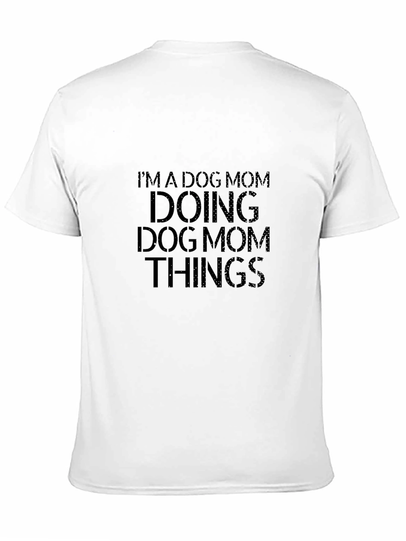 Show off your love for your furry friend with this stylish and comfortable Dog Mom T-shirt. Made from soft, breathable cotton, this black tee features bold text that reads "I'M A DOG MOM DOING DOG MOM THINGS." The classic fit makes it ideal for everyday wear, whether you're running errands, lounging at home, or walking your beloved dog. A perfect gift for any dedicated dog mom, this tee is both fashionable and functional. Pair it with jeans, shorts, or leggings for a casual and cool look. Show the world your devotion to your four-legged companion with this must-have tee! Get yours today!