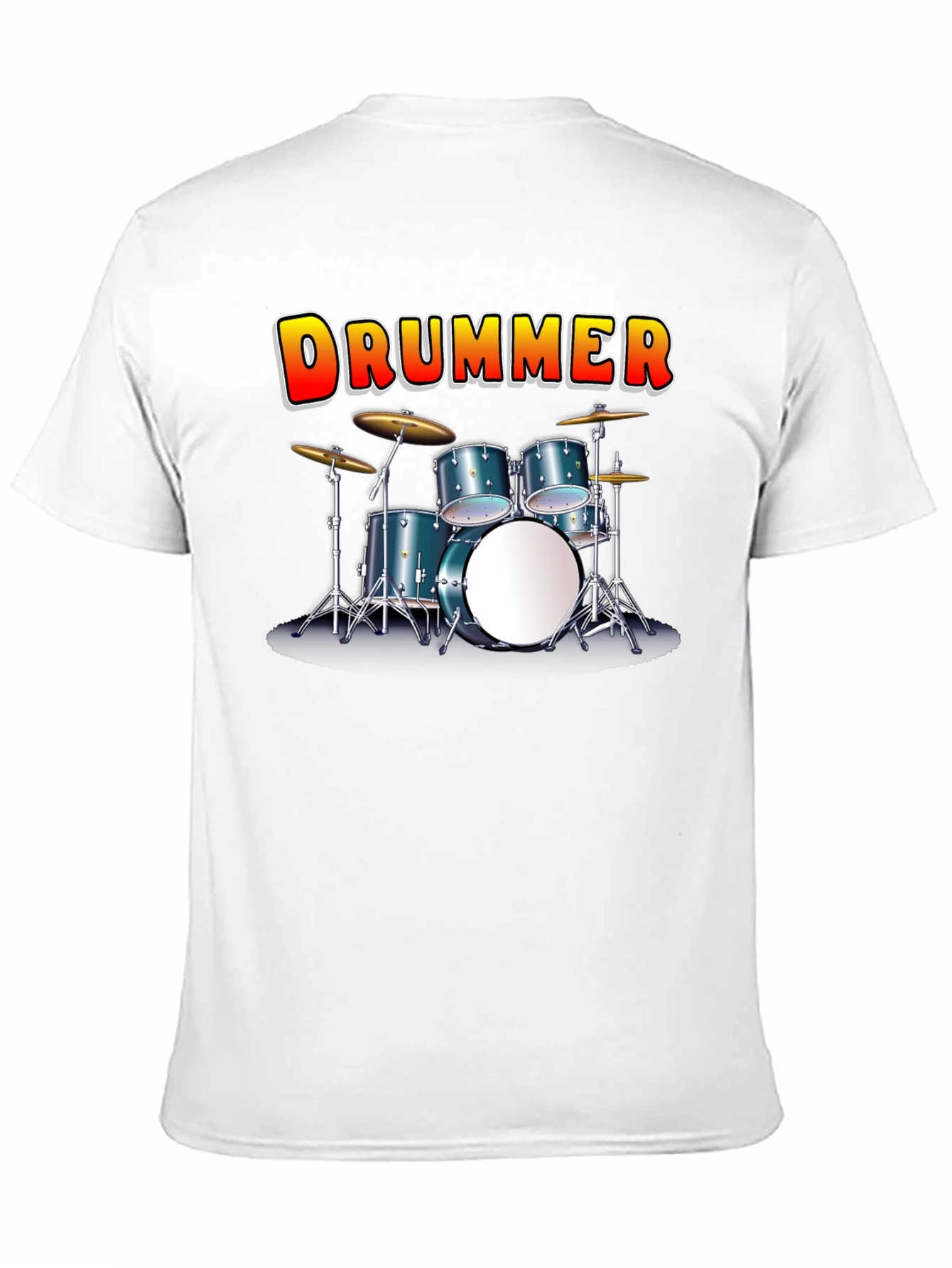 Showcase your passion for music with this stylish drummer t-shirt. Featuring a vibrant graphic of a drum set and bold "DRUMMER" lettering, this tee is perfect for musicians, music enthusiasts, and anyone who loves a cool design. The black background makes the graphic pop, ensuring you stand out from the crowd. Wear it to band practice, music events, or as a casual everyday statement piece. Made for comfort and style, this t-shirt is a must-have for your wardrobe. Express your love for drumming today!