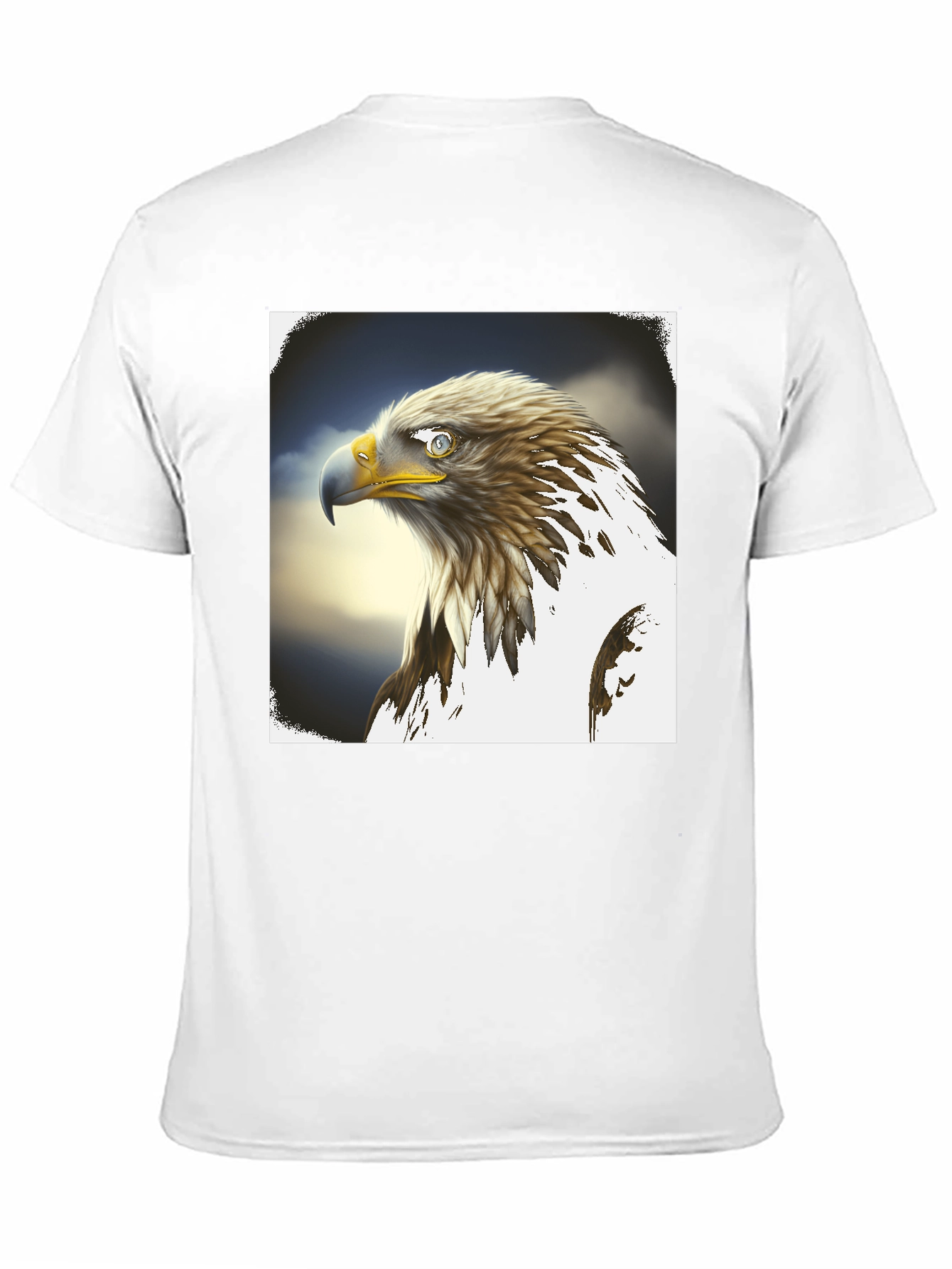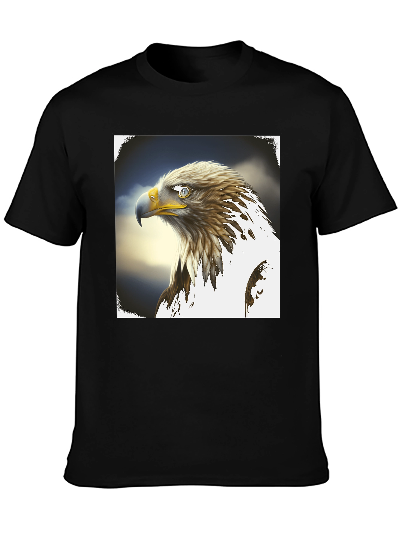 Showcase your love for wildlife with this striking men's black t-shirt. The shirt features a vibrant, detailed graphic print of an eagle's head. Made from what appears to be a soft and comfortable fabric, this tee offers both style and ease of wear. The classic crew neck and short sleeves make it a versatile addition to any wardrobe. Perfect for casual outings, nature enthusiasts, or anyone who appreciates unique graphic designs, this eagle tee is sure to make a statement. Pair it with jeans or shorts for a relaxed, cool look.