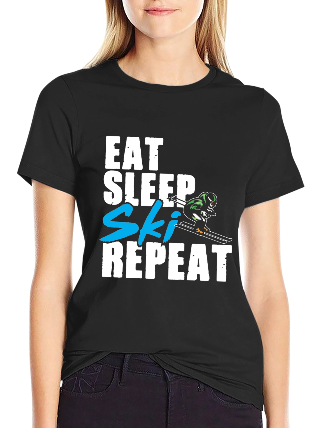 Eat Sleep Ski Repeat Graphic T-Shirt - Black