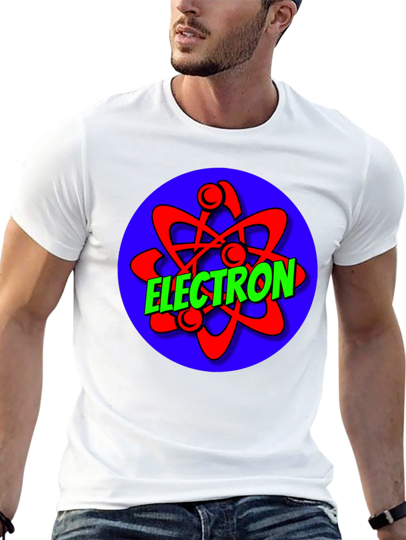 Show off your love for science with this eye-catching Electron Graphic T-Shirt. This stylish black tee features a vibrant, colorful design of an atom with the word "ELECTRON" boldly displayed across the center in bright green. The atomic design pops against a blue background, making it a fun and unique statement piece. Made from a comfortable and durable fabric, this t-shirt is perfect for everyday wear. Whether you're a science student, teacher, or just a fan of all things atomic, this t-shirt is sure to turn heads and spark conversations. Great for casual outings, science conventions, or just lounging around at home.