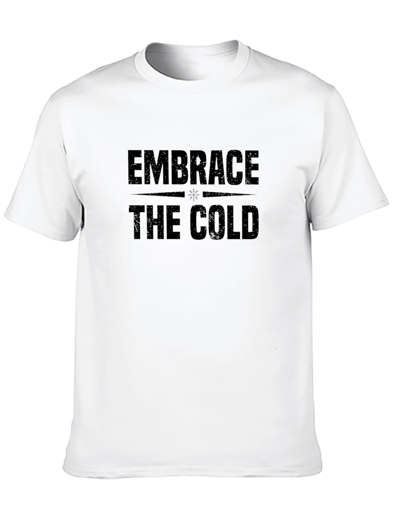 Brave the chill with this bold "Embrace The Cold" black t-shirt. Made from what appears to be comfortable, breathable cotton, this tee is perfect for layering during the colder months. The striking text makes a statement, whether you're hitting the slopes or simply enjoying a cozy day indoors. Its classic fit ensures a flattering silhouette for all. Get ready to conquer winter in style and comfort with this essential wardrobe addition.