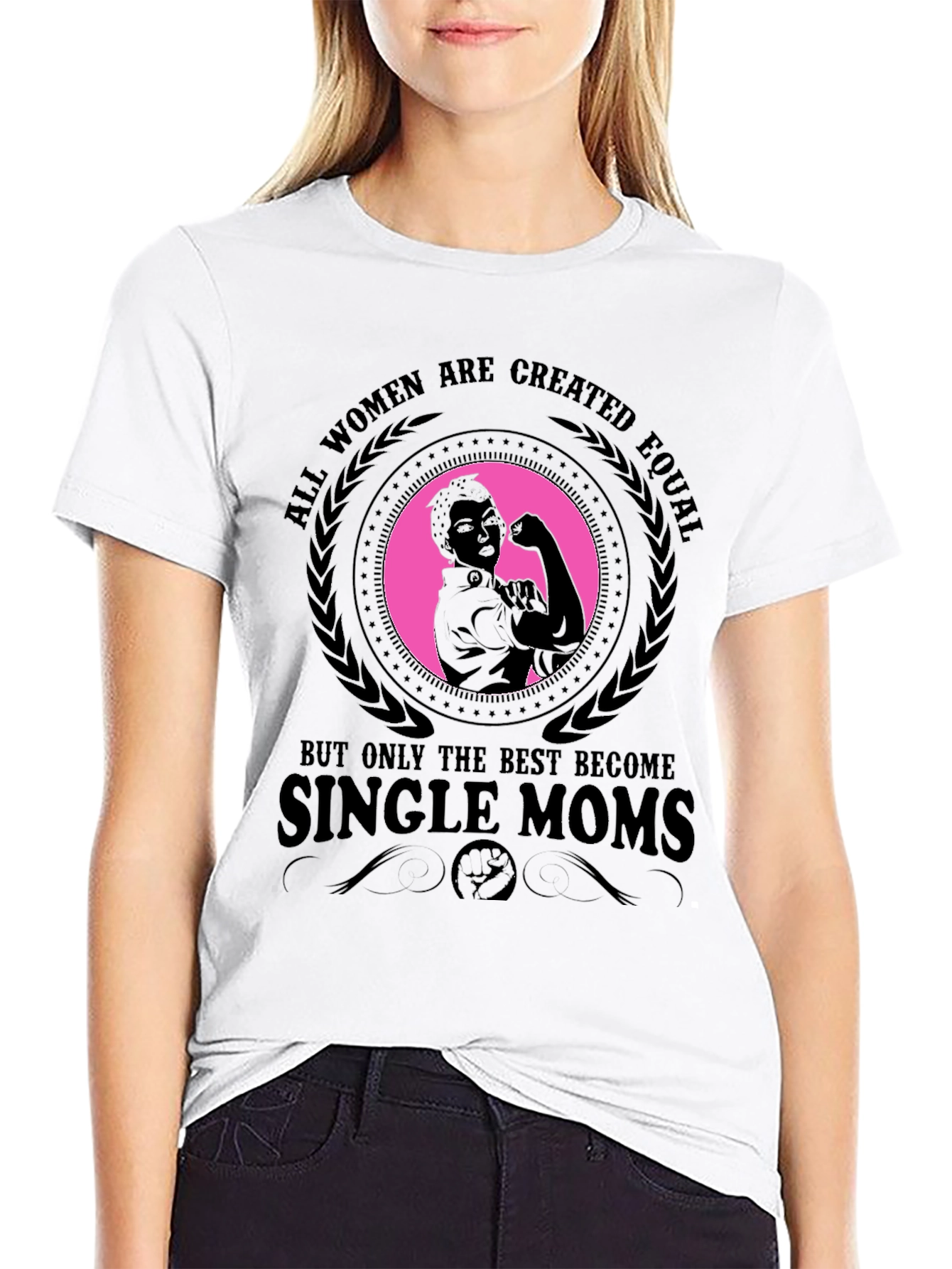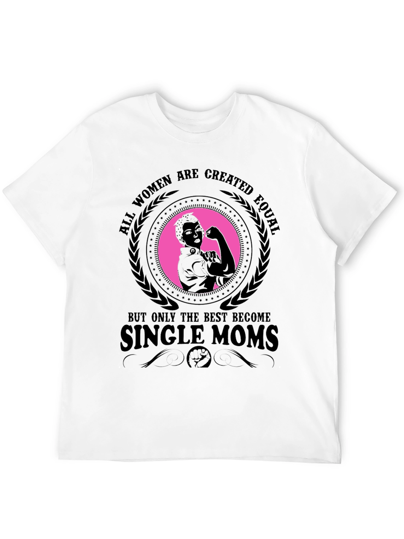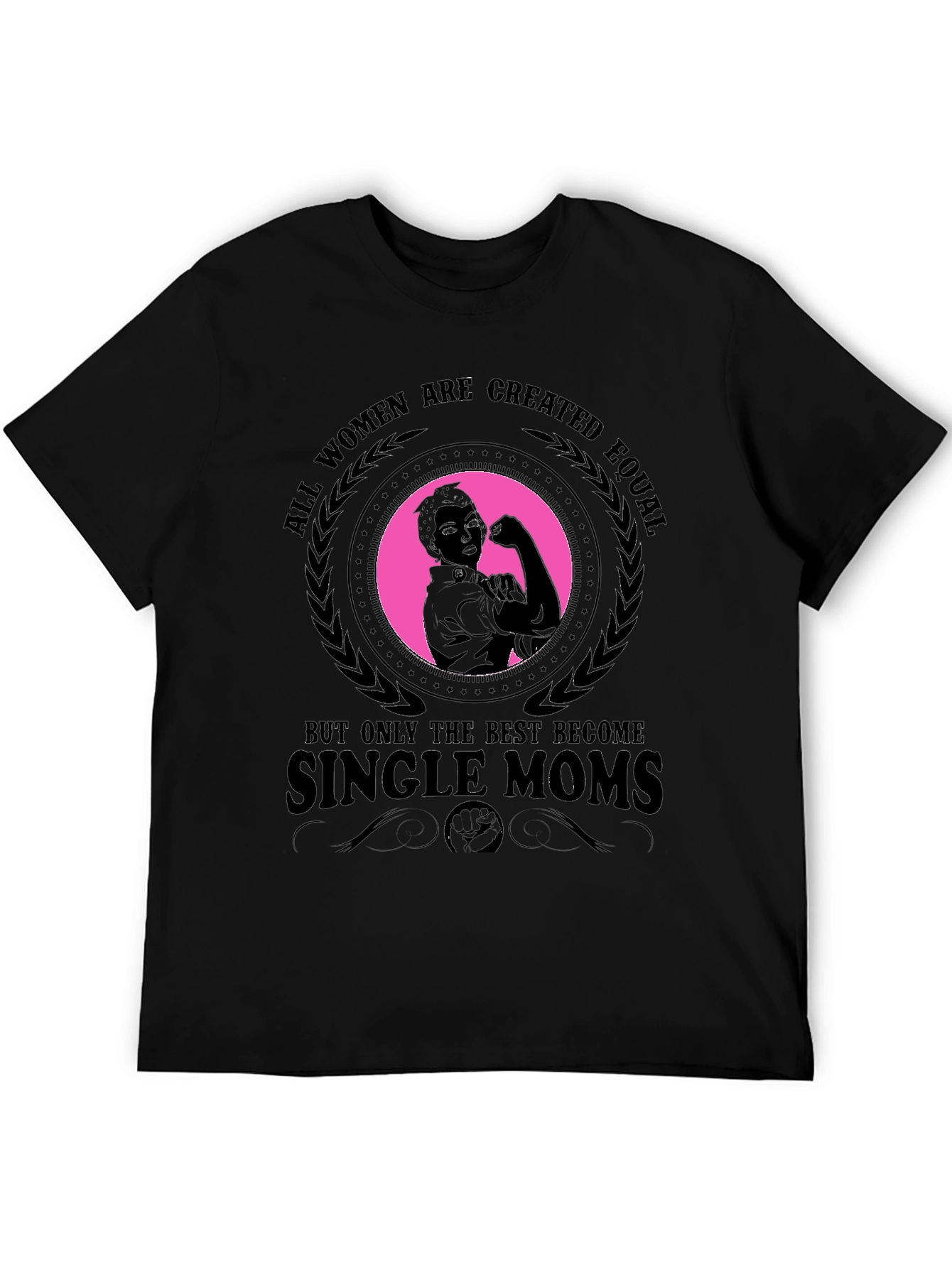 Show your strength and pride with this bold black t-shirt. Featuring a powerful "Rosie the Riveter" style graphic with a pink backdrop, this tee celebrates single mothers. The design incorporates the empowering message "All women are created equal, but only the best become single moms". This comfortable shirt is perfect for casual wear, making a statement at events, or showing off your mom pride every day. Its classic fit and durable print ensure long-lasting style and comfort. A great gift for yourself or the amazing single mom in your life! Let the world know that single moms are the best.