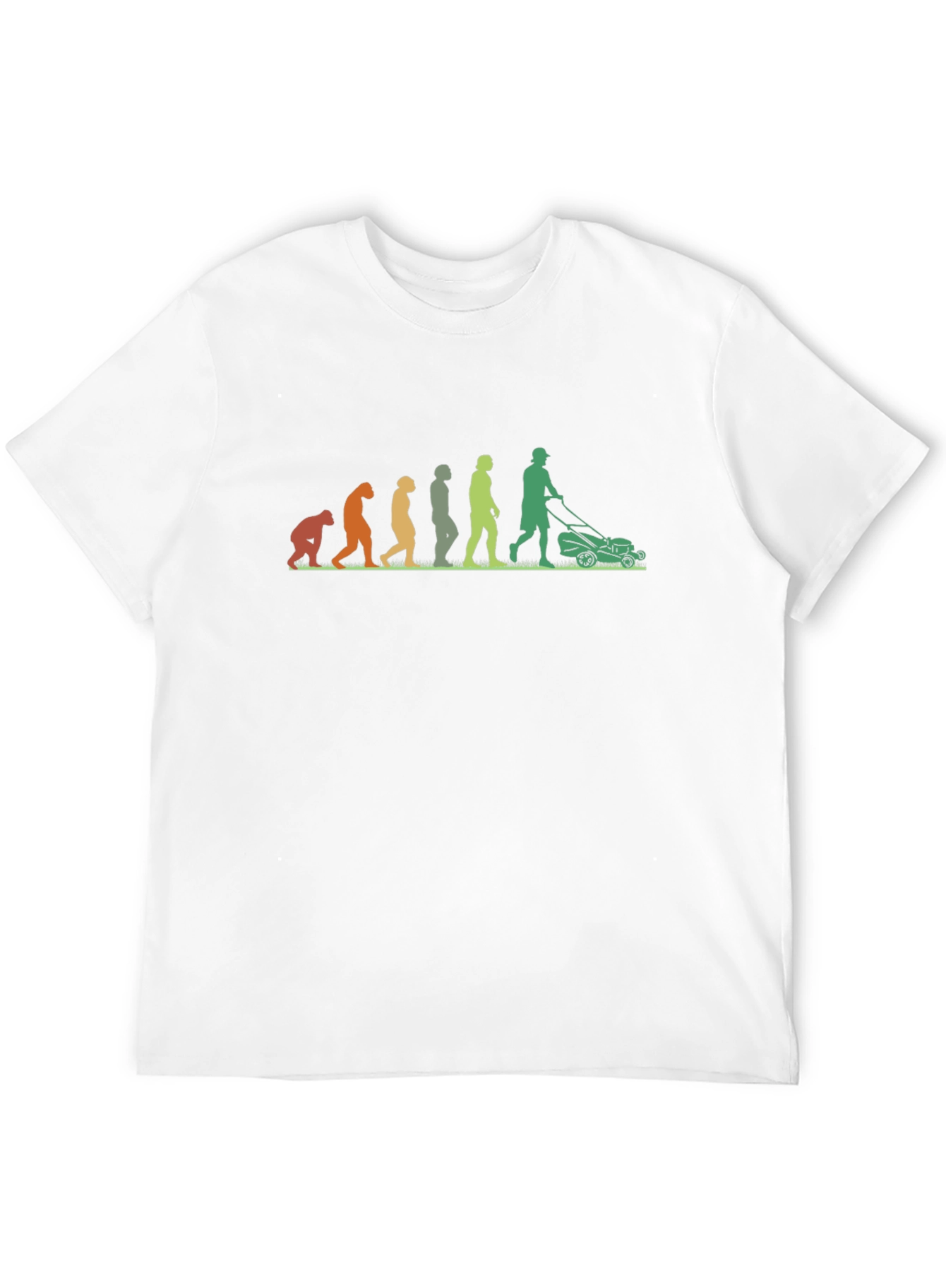 Showcase your love for lawn care with this unique black t-shirt. This tee features a creative design depicting the evolution of humans to a modern figure mowing the lawn. The vivid colors highlight the graphic against the solid black background. Made from comfortable materials, this tee is perfect for everyday wear or for showcasing your passion for a well-manicured lawn. Ideal for casual outings, yard work, or as a gift for the lawn care enthusiast in your life. This shirt is sure to spark conversation and showcase your unique sense of humor and appreciation for a neatly trimmed yard.