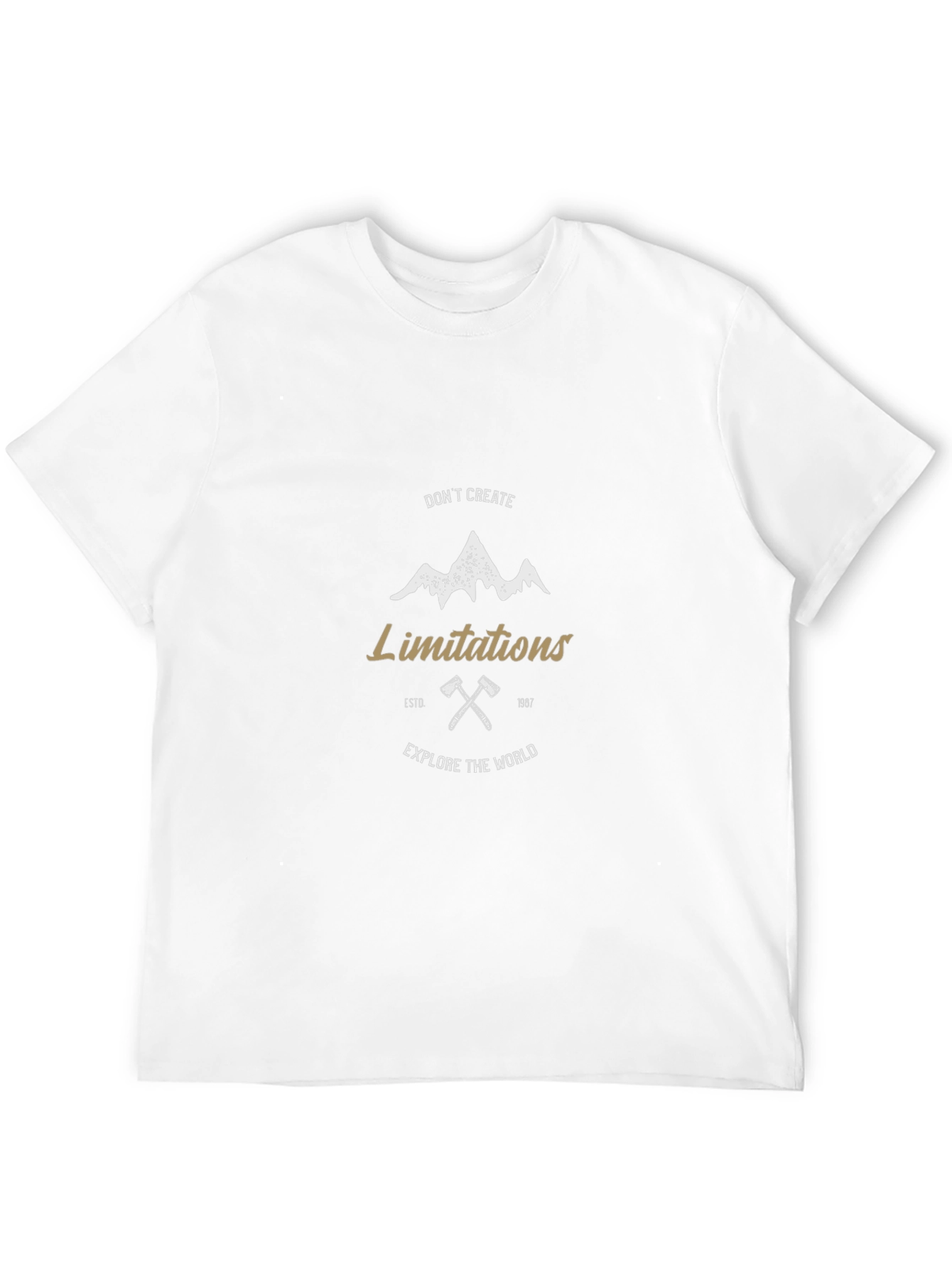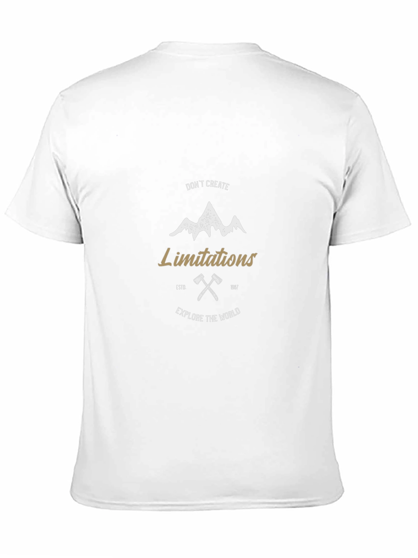 Elevate your casual style with this bold, black graphic tee. Featuring a vintage-inspired design with a mountain motif and crossed axes, this t-shirt encourages you to "Explore the World" and not create limitations. The distressed print lends a touch of rugged charm, perfect for outdoor adventures or everyday wear. Made from comfortable materials, it offers a relaxed fit for all-day comfort. Pair it with jeans or shorts for a effortlessly cool look. Whether you're hitting the trails or simply hanging out, this shirt is a stylish reminder to embrace life's possibilities.