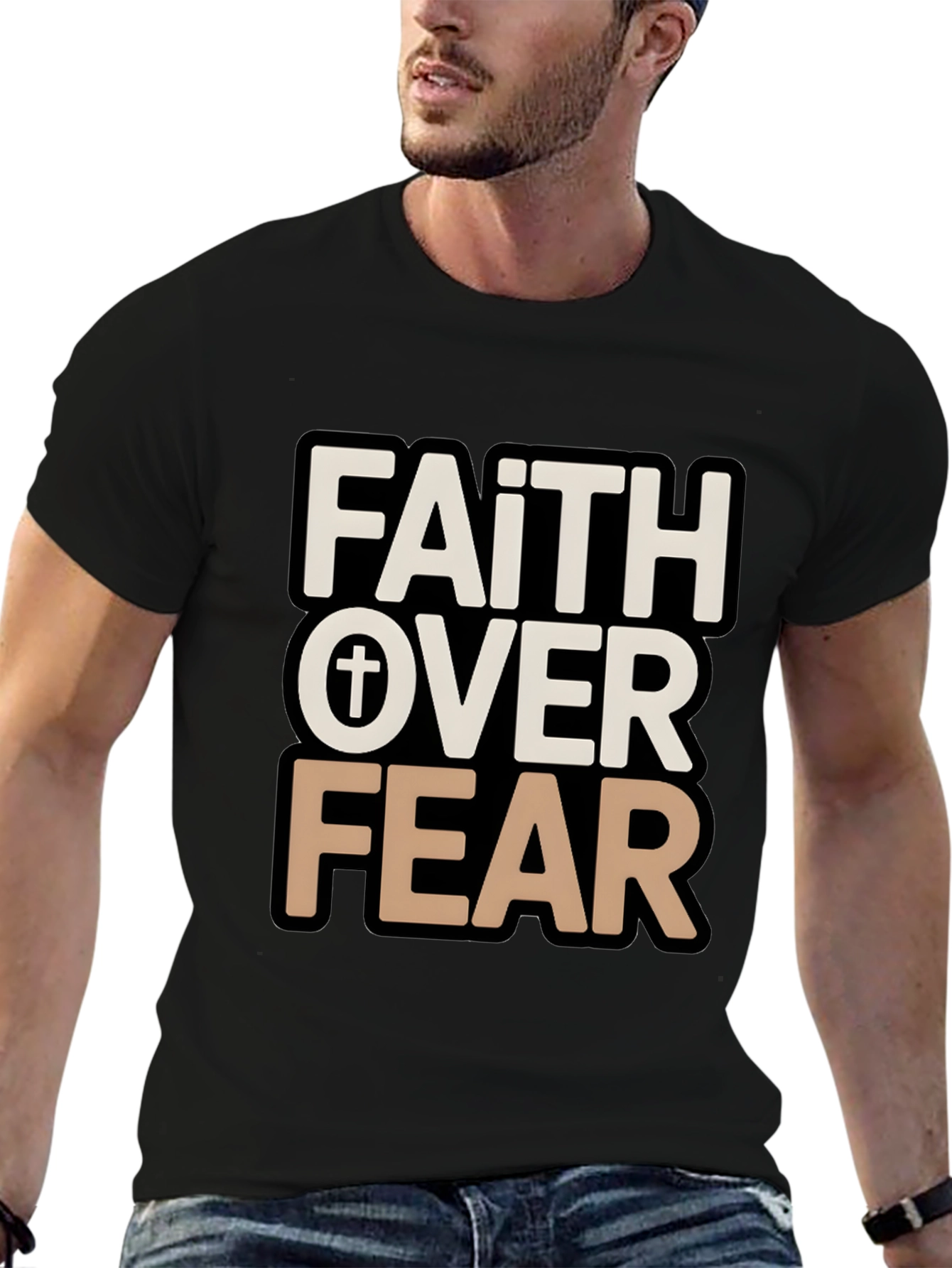 Embrace your faith with this stylish and inspiring "Faith Over Fear" graphic t-shirt. The design features bold lettering in contrasting colors, making a powerful statement. Made from comfortable fabric, this tee is perfect for everyday wear and expressing your beliefs. Whether you're heading to church, meeting friends, or simply running errands, this Christian t-shirt is a versatile addition to your wardrobe. Show your faith in a fashionable way with this unique tee. Great for gifting to loved ones as well!