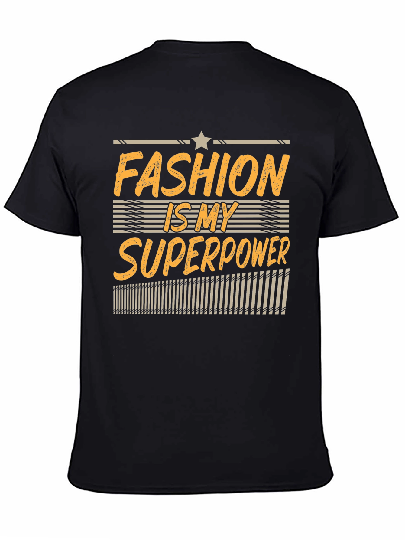 Show off your love for style with this eye-catching graphic tee! The shirt features a bold "Fashion Is My Superpower" design in a vibrant gold color with retro stripe accents. Made from a comfortable black fabric, this tee is perfect for everyday wear or making a statement. The unique design is sure to turn heads and spark conversations. Whether you're hitting the streets or relaxing at home, this tee is a must-have for any fashion enthusiast! Pair it with jeans, shorts, or a skirt for a trendy and effortless look.