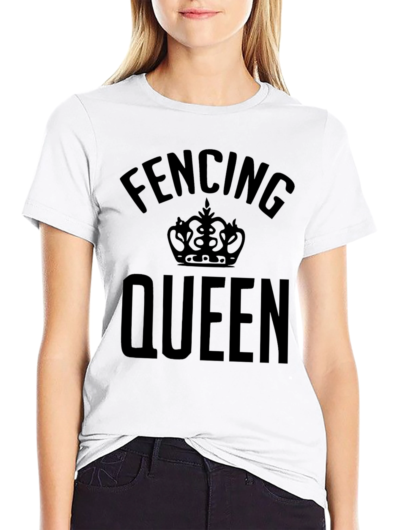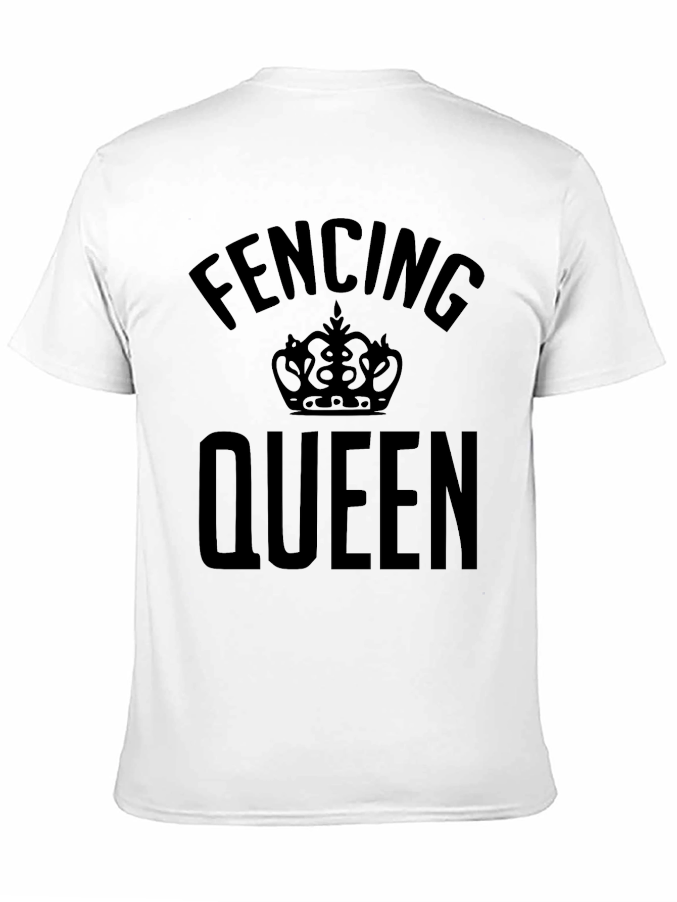 Show your love for fencing with this stylish black t-shirt. The design features the text "FENCING" arched over a crown graphic and the word "QUEEN" printed boldly below. Made from comfortable, breathable fabric, this tee is perfect for fencers and fencing enthusiasts alike. The design and color makes it versatile enough to wear casually or at fencing practice, expressing your passion in a unique and fashionable way.
