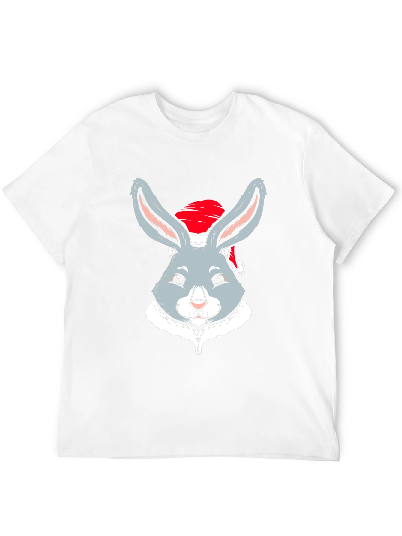 Spread holiday cheer with this adorable black t-shirt featuring a charming rabbit graphic. The bunny is decked out in a festive Santa hat and a white fur-trimmed collar. The design is bold and eye-catching. This shirt is perfect for casual holiday gatherings, family photos, or simply adding a touch of whimsy to your everyday wardrobe. The t-shirt appears to be made of a comfortable cotton blend, making it ideal for all-day wear. Show off your festive spirit with this unique and playful tee!
