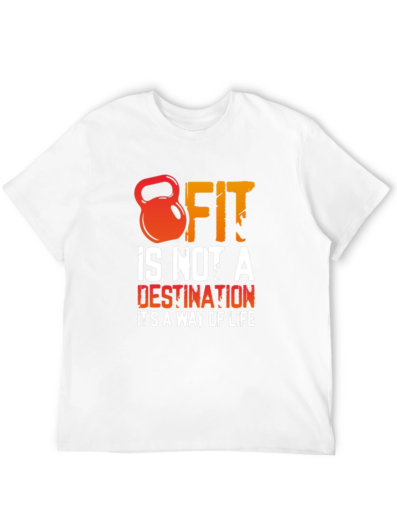 Show off your dedication to a healthy lifestyle with this stylish black t-shirt! Featuring a vibrant graphic design with a kettlebell icon and the inspiring message "Fit is not a destination, it's a way of life," this tee is perfect for gym enthusiasts and anyone committed to wellness. The bold lettering and eye-catching color palette create a standout look, whether you're working out, running errands, or just relaxing at home. Made from comfortable, breathable fabric, it's designed for everyday wear. Get motivated and inspire others with this unique fitness-themed t-shirt!