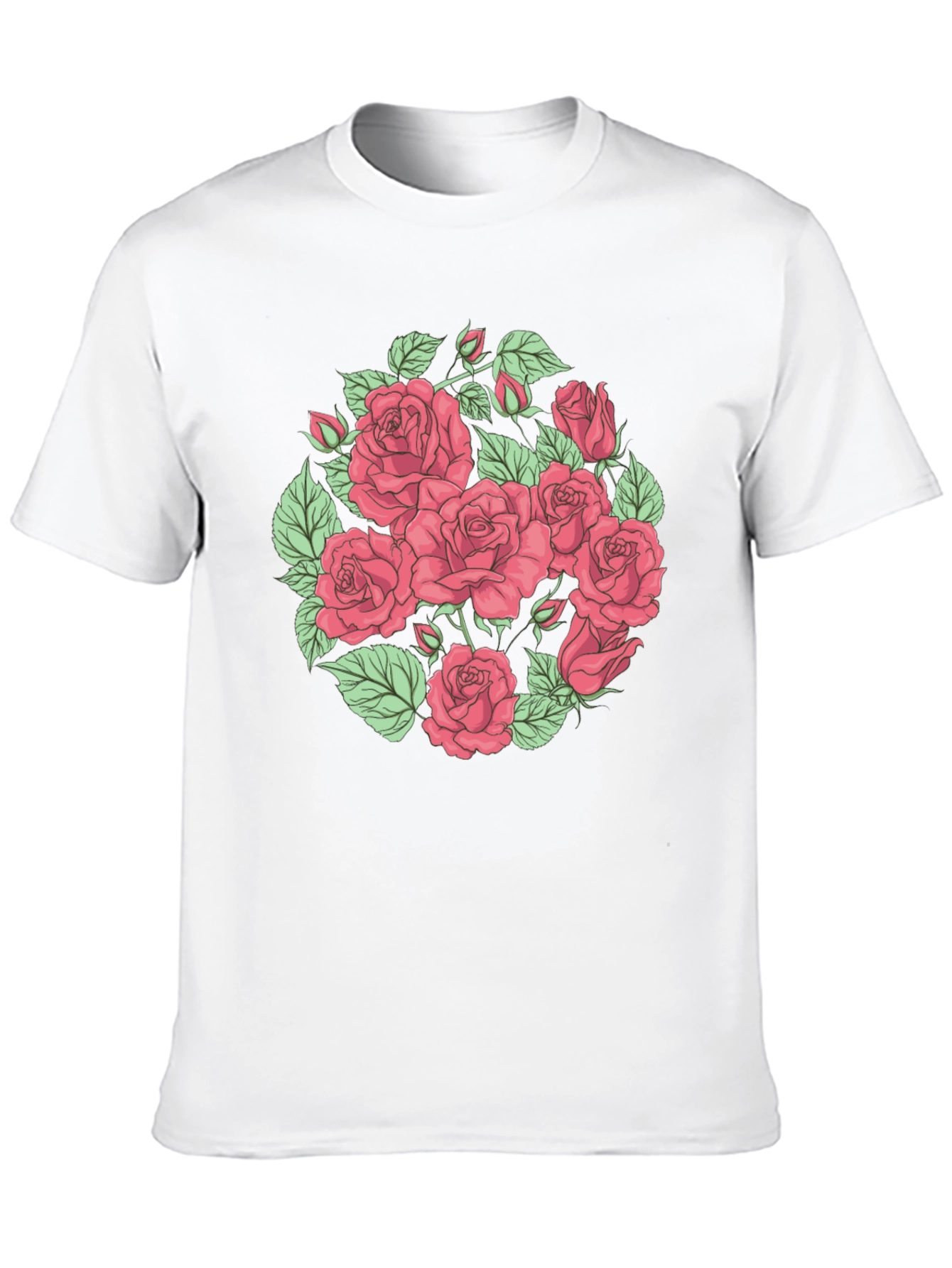 This stylish black t-shirt features a vibrant and detailed floral design with roses and leaves. The print is prominently displayed on the front, adding a touch of elegance and charm to your casual wardrobe. Made from a comfortable-looking fabric, this tee is perfect for everyday wear. Dress it up with a blazer or keep it casual with jeans, this versatile t-shirt is a great addition to any outfit. This tee is comfortable and cool, perfect for warmer weather.
