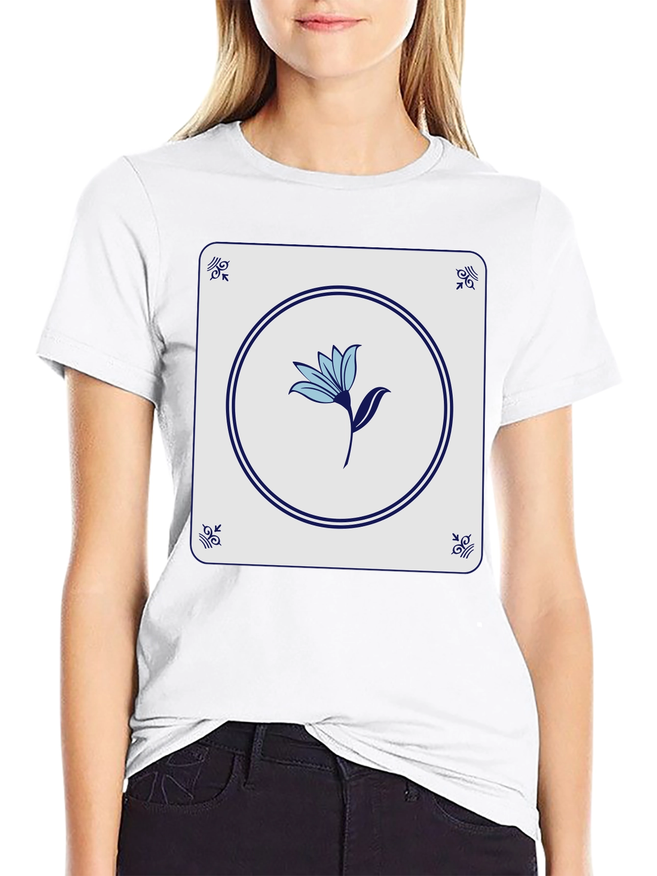 Elevate your casual wardrobe with this unique graphic tee. The shirt features a striking floral tile design, lending a touch of artistic flair to your everyday style. The tile graphic has a stylized blue flower within a blue circular border and blue ornamental accents in each corner. Made from comfortable materials, this t-shirt is perfect for daily wear, outings with friends, or relaxing at home. The classic fit ensures a flattering silhouette for any body type. Pair it with jeans, shorts, or chinos for a versatile and fashionable look. The shirt's distinctive design and high-quality print will make it a standout piece in your collection.