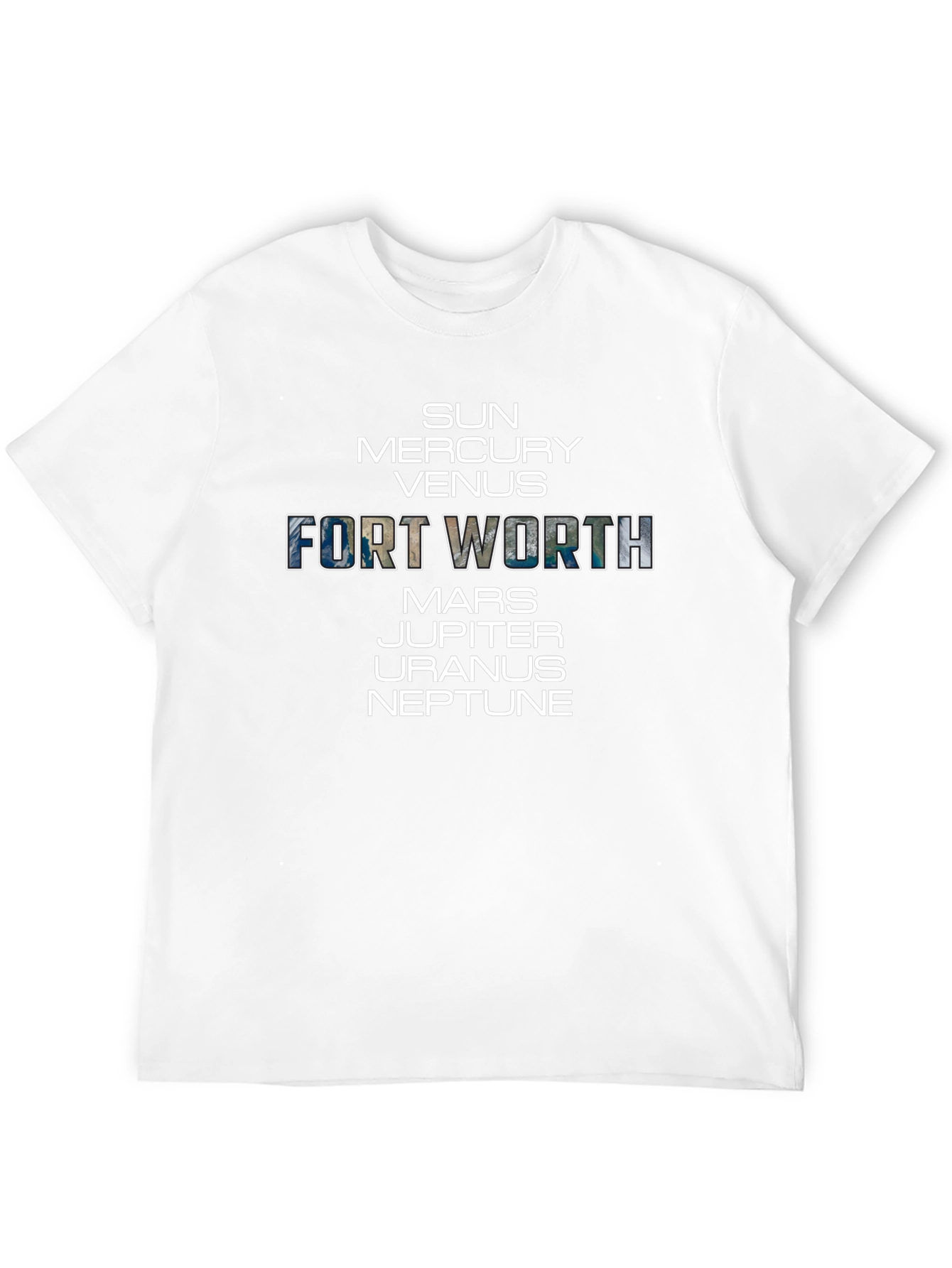 Show your love for Fort Worth and space exploration with this stylish black t-shirt. The design features a list of planets with “Fort Worth” displayed with a starfield background. Made from soft, breathable fabric, this tee offers all-day comfort and a relaxed fit. It’s perfect for casual outings, space enthusiasts, or anyone who wants to add a unique touch to their wardrobe. Wear your passion for science and your city with pride!