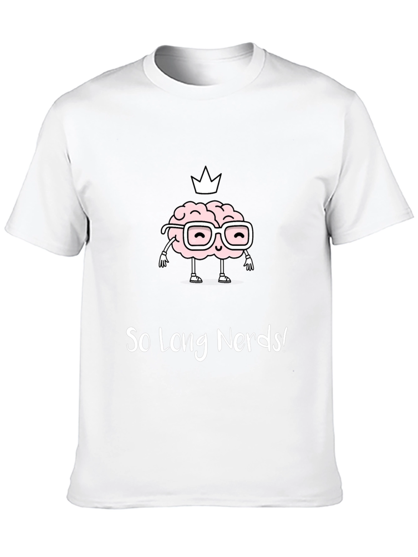 Express your intelligence with this unique black tee. Featuring a cartoon brain wearing glasses and a crown, it's a fun and quirky statement piece. The bold "So Long Nerds!" slogan adds a touch of humor. Made from comfortable material, this t-shirt is perfect for casual wear, parties, or as a gift for the witty friend. Stand out from the crowd and show off your brainpower with this awesome design. Ideal for everyday wear. Grab yours today and let your intelligence shine!