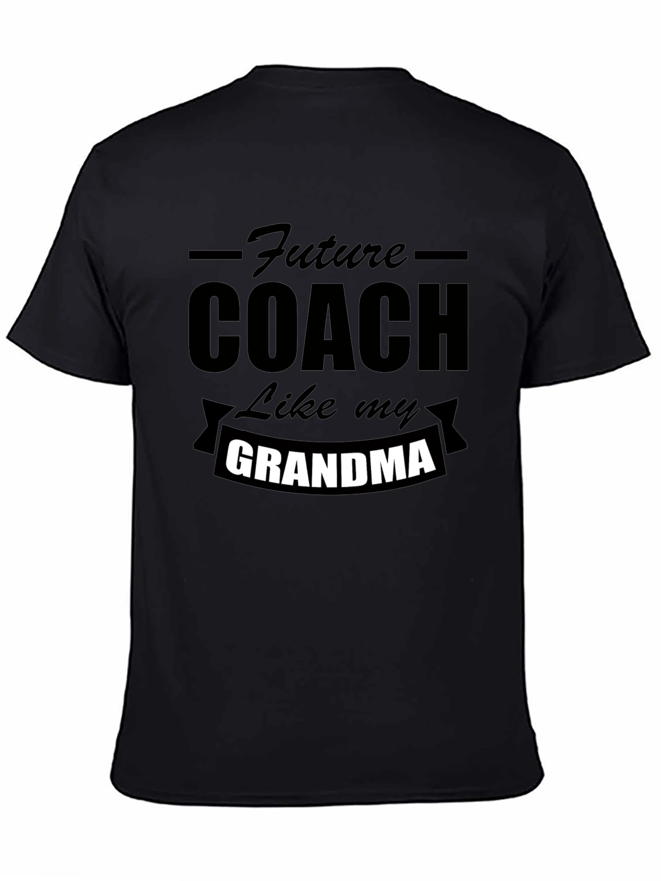 Show off your love of coaching with this stylish black t-shirt. Featuring the playful phrase "Future Coach Like My Grandma," this tee is perfect for aspiring coaches and proud grandchildren alike. The design is printed in bold, contrasting colors for maximum impact. Made from a comfortable, breathable fabric, it's ideal for casual wear or coaching on the field. A fun and unique way to express your passion for coaching and honor a special grandma.