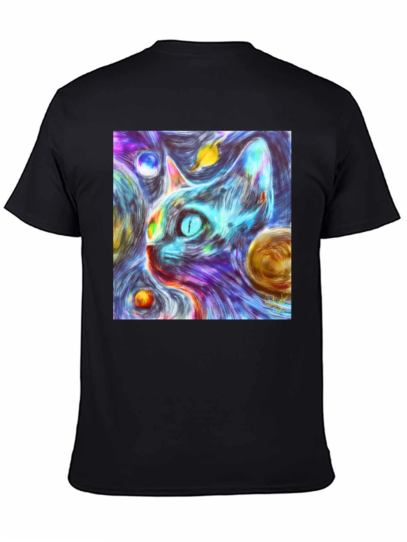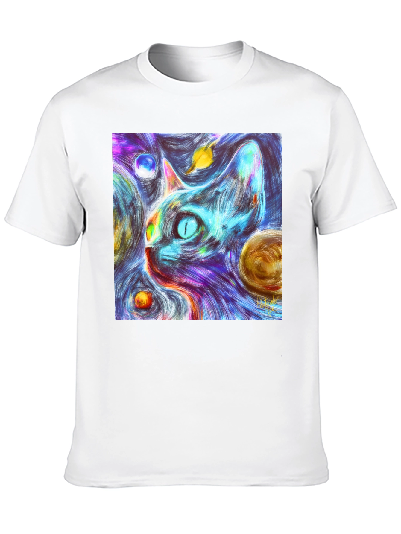 Show your love for cats and the cosmos with this eye-catching graphic tee! The shirt features a unique design of a cat rendered in a vibrant, swirling, galaxy-inspired style. Bold colors and a painted effect create a mesmerizing visual. This soft, breathable t-shirt provides all-day comfort. Ideal for casual outings, artistic events, or expressing your unique style. Makes a purr-fect gift for cat lovers and space enthusiasts!