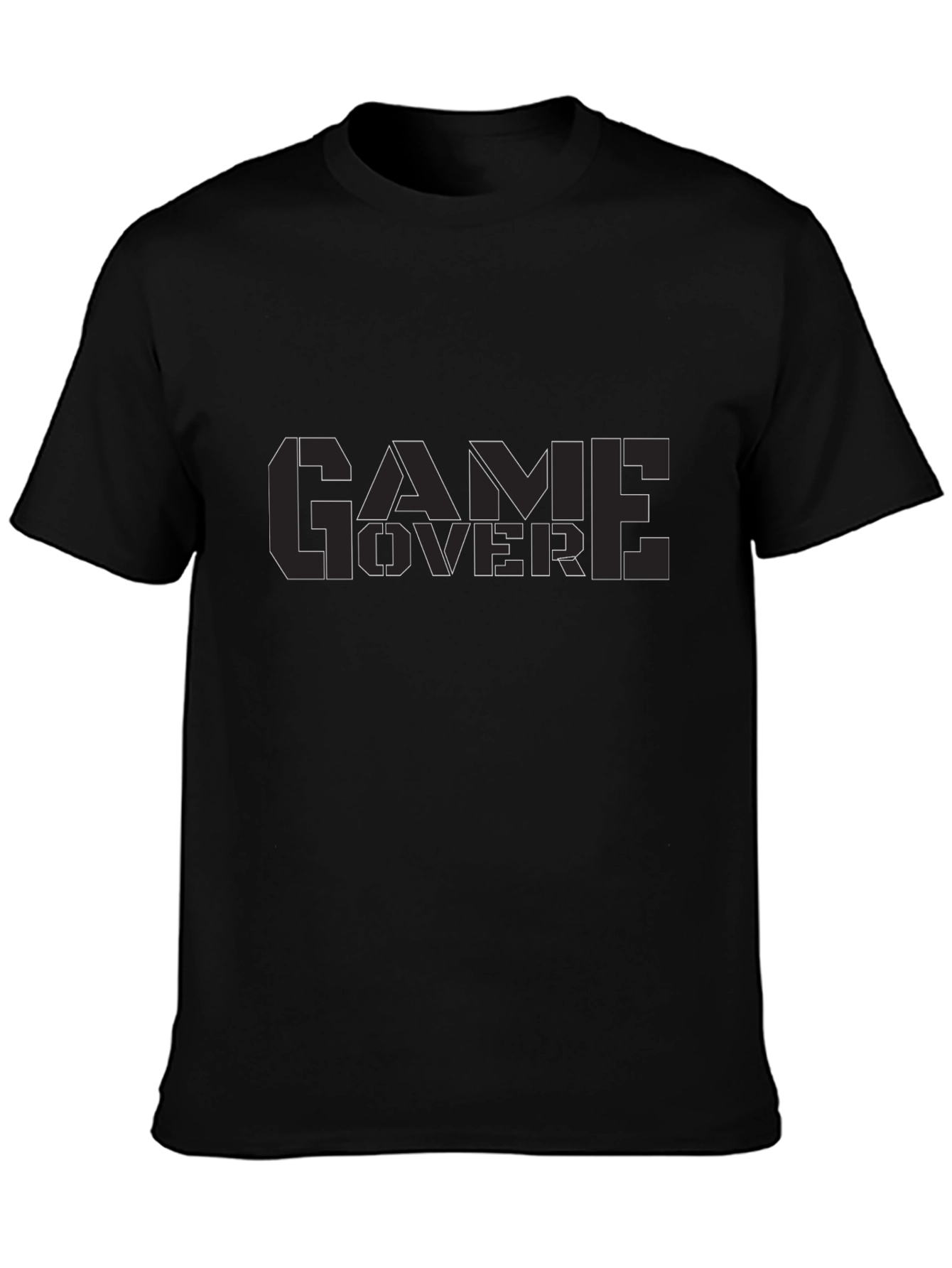 Level up your wardrobe with this bold, black t-shirt. Featuring the iconic phrase "Game Over" in a unique, outlined font, this tee is perfect for gamers and retro enthusiasts alike. The design gives off a cool, vintage vibe while maintaining a modern edge. Made from a comfortable fabric, this short-sleeve shirt is ideal for everyday wear, gaming sessions, or casual outings. Show off your love for gaming culture with this standout piece. Great gift for video game lovers!