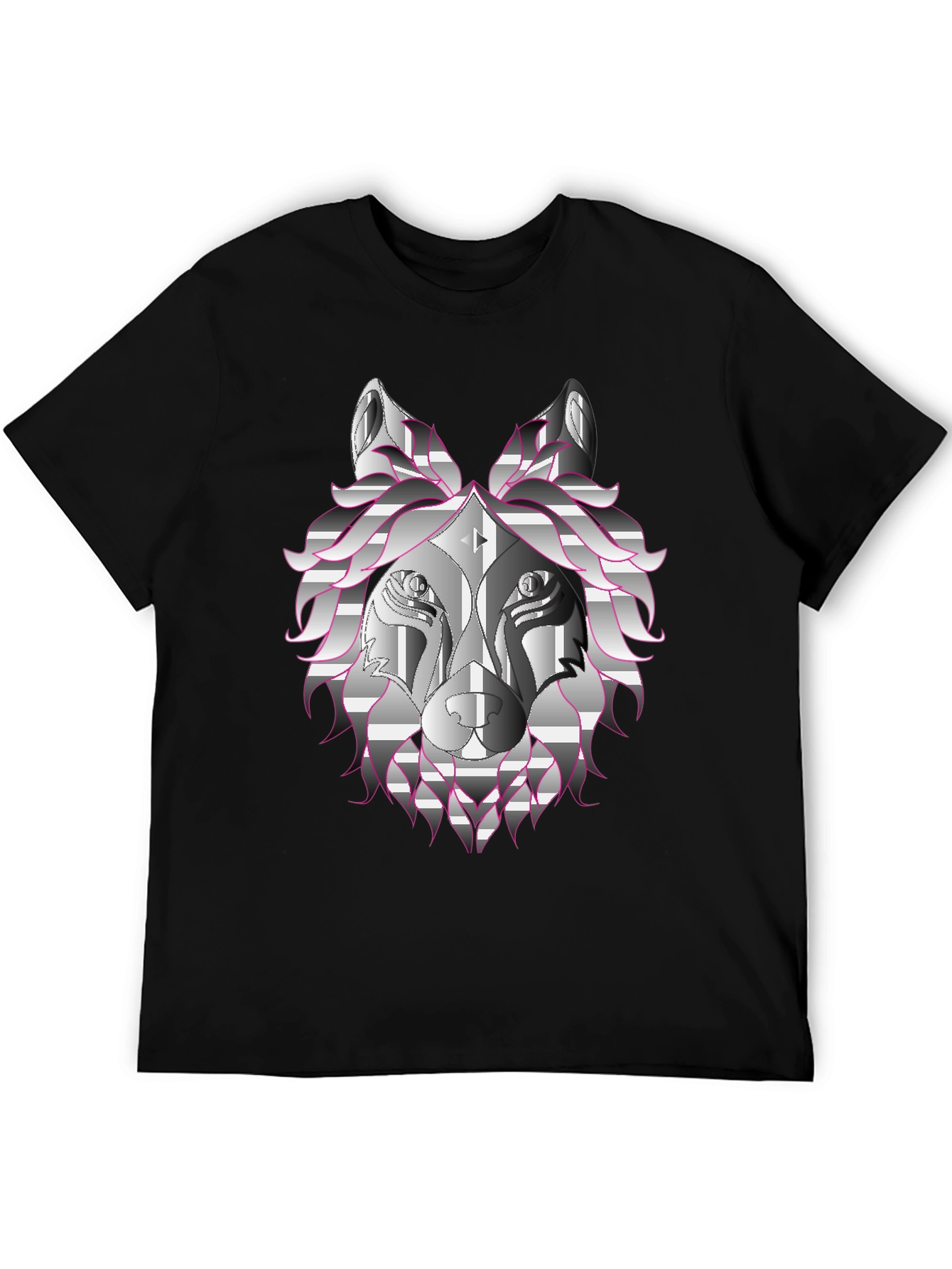 Show off your love for wildlife with this striking geometric wolf head T-shirt. This unique design features a detailed wolf head constructed from geometric shapes in grayscale tones, outlined with a vibrant magenta hue. Crafted from a comfortable, breathable fabric, this classic fit tee is perfect for everyday wear. Whether you're out exploring nature or simply making a statement, this tee is sure to turn heads. Pair it with jeans or shorts for a cool, casual look. Add this eye-catching piece to your wardrobe today!