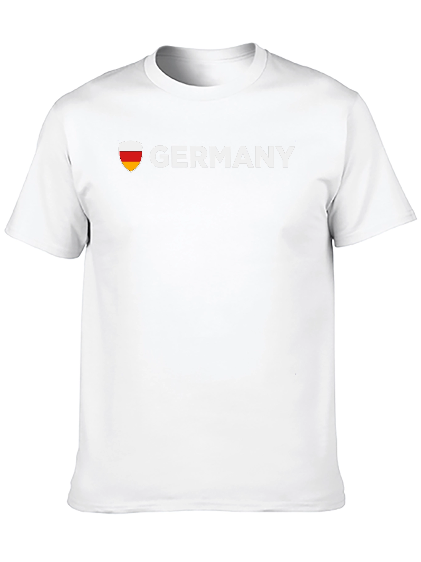 Show your German pride with this stylish black cotton t-shirt. The shirt features a vibrant shield graphic in the German colors next to the word "GERMANY" emblazoned across the chest. The classic crew neck and comfortable fit make it perfect for everyday wear, sporting events, or casual outings. Made from soft, breathable cotton, this tee ensures all-day comfort. Available in various sizes. A must-have for any German enthusiast!