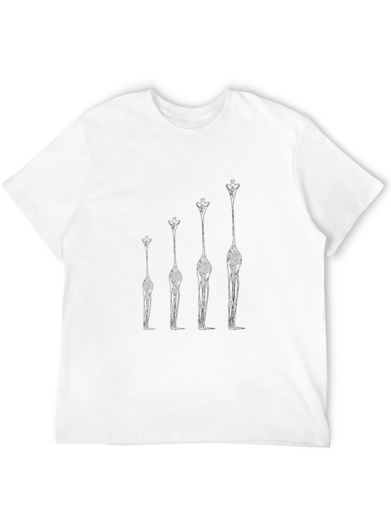 Show off your love for wildlife with this unique black graphic tee! The shirt features a creative evolution design, depicting giraffes in various stages of growth. Made from soft, breathable fabric, this t-shirt offers exceptional comfort and durability for everyday wear. Its classic fit makes it suitable for any casual occasion. Make a statement with this eye-catching piece and turn heads wherever you go. Express your unique style with this must-have addition to your wardrobe.
