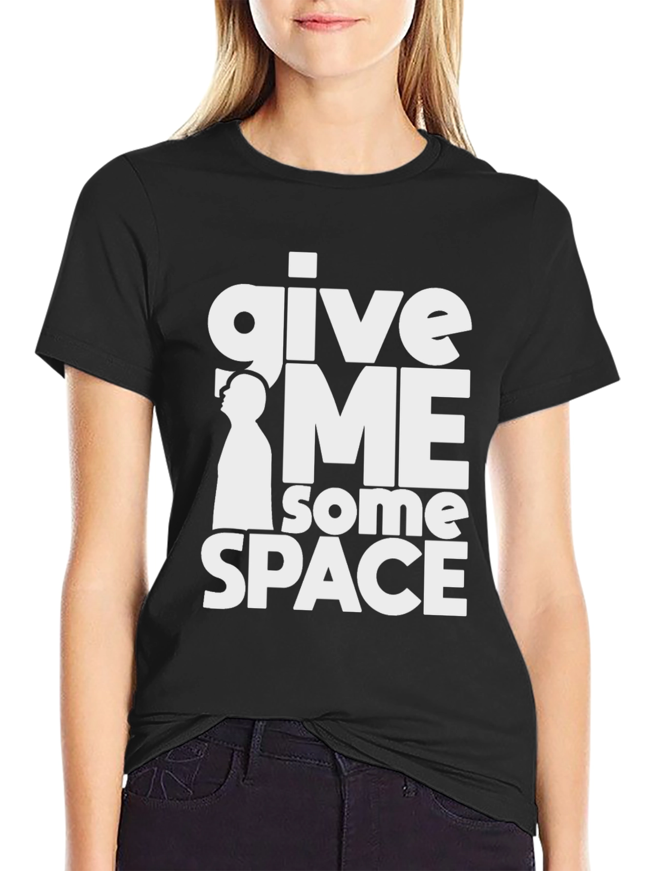 Make a statement with this bold black t-shirt featuring the phrase "Give Me Some Space" in striking white letters. The graphic design incorporates a subtle silhouette, adding a unique touch. This tee appears to be made from a soft and comfortable material, perfect for casual wear. Its classic fit makes it versatile for pairing with jeans, shorts, or even dressing up with a jacket. Ideal for those who appreciate witty and expressive apparel, this t-shirt is sure to turn heads and spark conversations. Show off your unique style and let the world know your preferences with this trendy graphic tee. Great for everyday wear or as a gift for a friend!