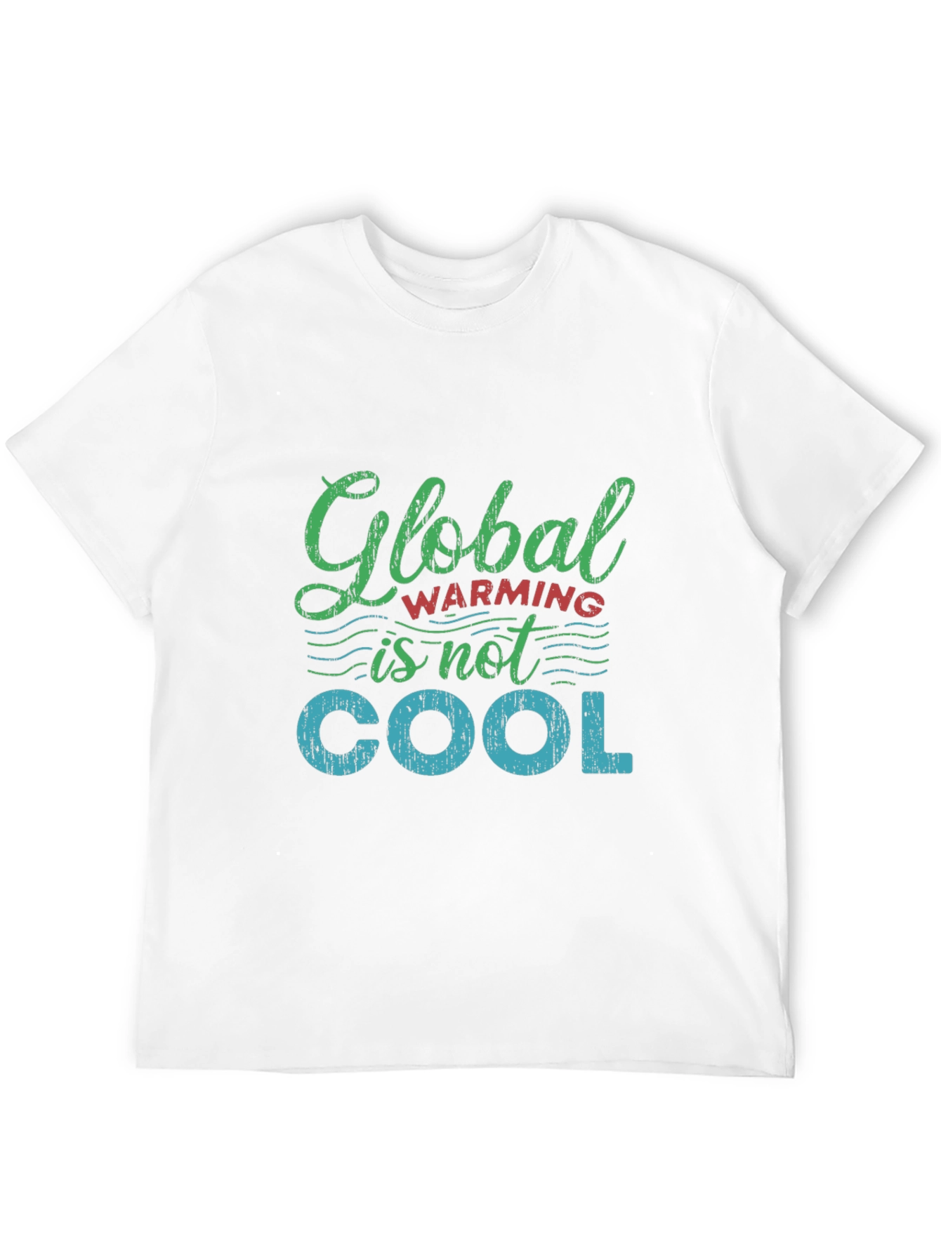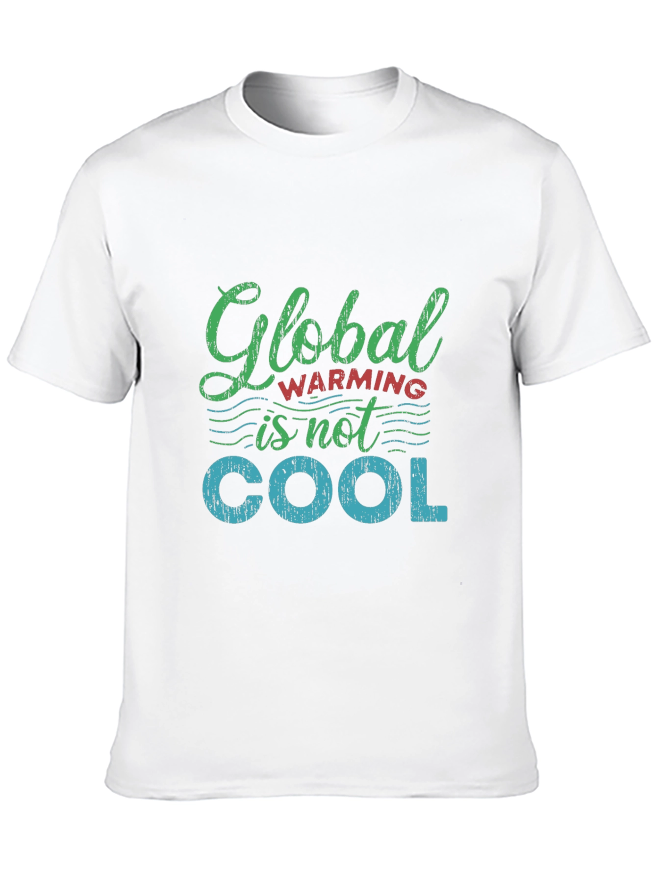 Show your concern for the environment with this eye-catching graphic tee. Made from a soft, comfortable fabric, this black t-shirt features the phrase "Global warming is not cool" in distressed green and blue text. The design also includes a subtle wave pattern. Perfect for everyday wear, rallies, or casual outings, this tee is a great way to spark conversations and raise awareness about climate change. The classic fit ensures a relaxed and flattering silhouette for any body type. Get yours today and make a statement!