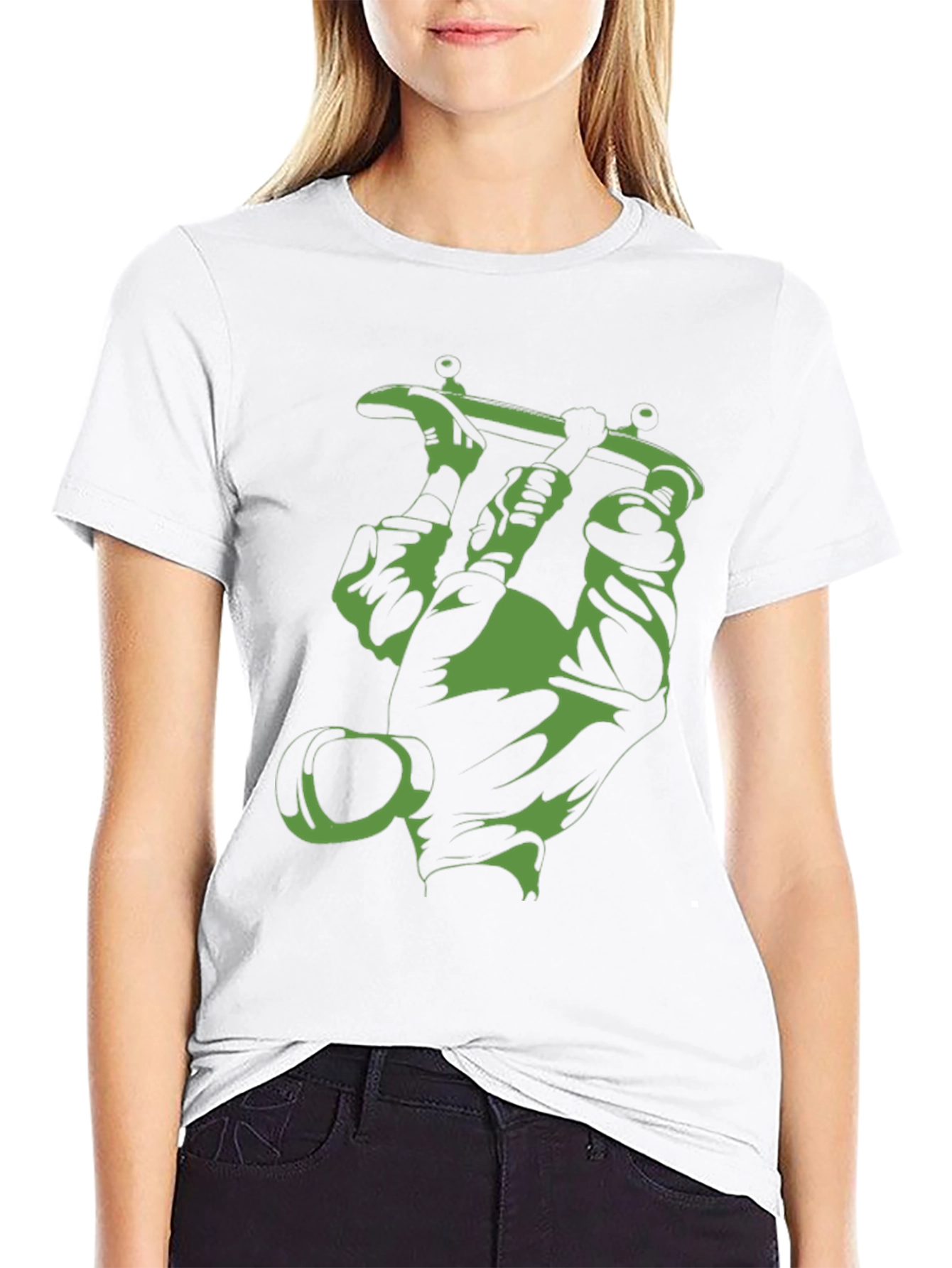 Showcase your unique style with this striking black t-shirt featuring a bold green graphic design. The design prominently displays a skateboard. Made from comfortable materials, this tee is perfect for everyday wear, skateboarding sessions, or casual outings. The eye-catching graphic adds a touch of urban style, making it a standout piece in any wardrobe. Whether you're hitting the skate park or hanging out with friends, this t-shirt combines comfort and fashion. The black color creates a sleek look that pairs well with jeans, shorts, or joggers.