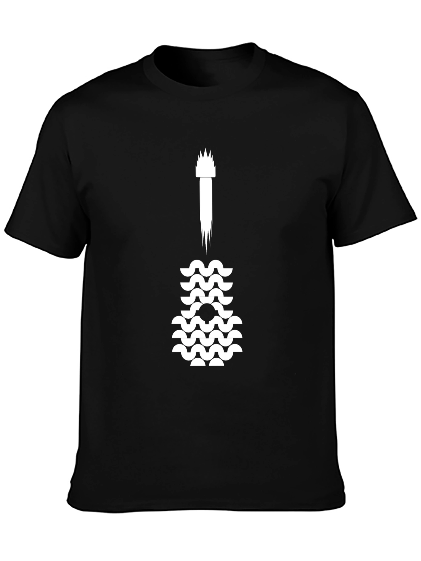 Rock your style with this unique black graphic tee. Featuring a striking white design resembling a guitar formed from waves and a stylized neck, this shirt is perfect for music lovers and those with a flair for the abstract. Made from comfortable, breathable cotton, it's ideal for everyday wear, casual outings, or expressing your individuality. The minimalist design makes it versatile enough to pair with jeans, shorts, or even dress pants. Show off your passion for music and eye-catching style with this cool and comfortable t-shirt.