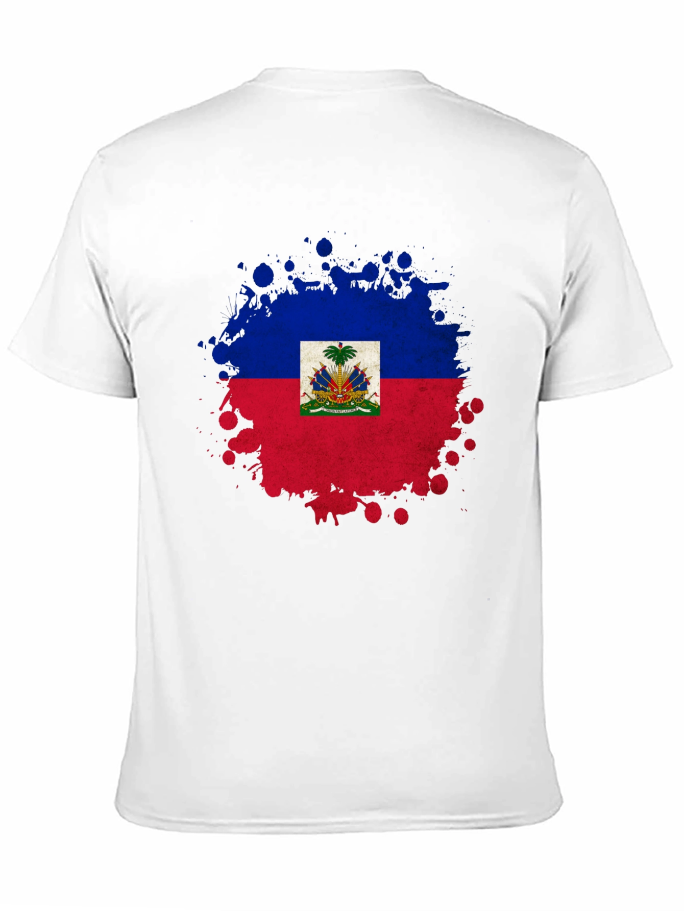 Show your Haitian pride with this stylish black t-shirt! Featuring a distressed splatter print of the Haitian flag, this shirt is perfect for casual wear. The design showcases the iconic blue and red stripes with the national coat of arms, giving it a unique and eye-catching look. Made from comfortable, breathable fabric, this tee is great for everyday wear, cultural events, or simply showing off your heritage. Grab yours today and celebrate Haiti in style!