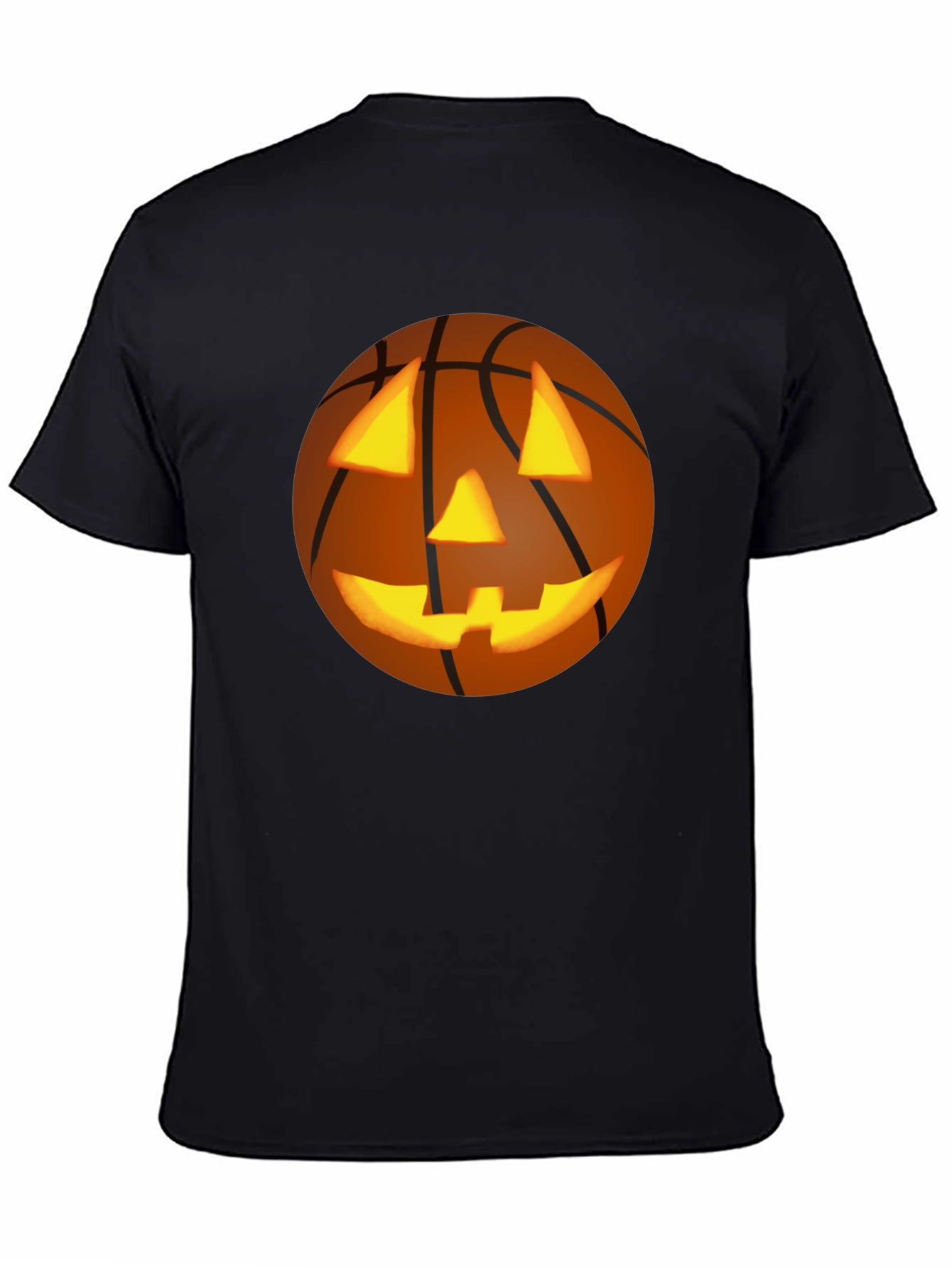 Get ready for Halloween with this unique black t-shirt featuring a fun and festive design. A basketball is cleverly reimagined as a jack-o'-lantern, combining sports and spooky season. This shirt is perfect for basketball lovers who enjoy Halloween. Made from a comfortable material, it's ideal for casual wear, Halloween parties, or even a basketball-themed costume. Stand out with this creative and eye-catching t-shirt that shows off your love for both basketball and Halloween!