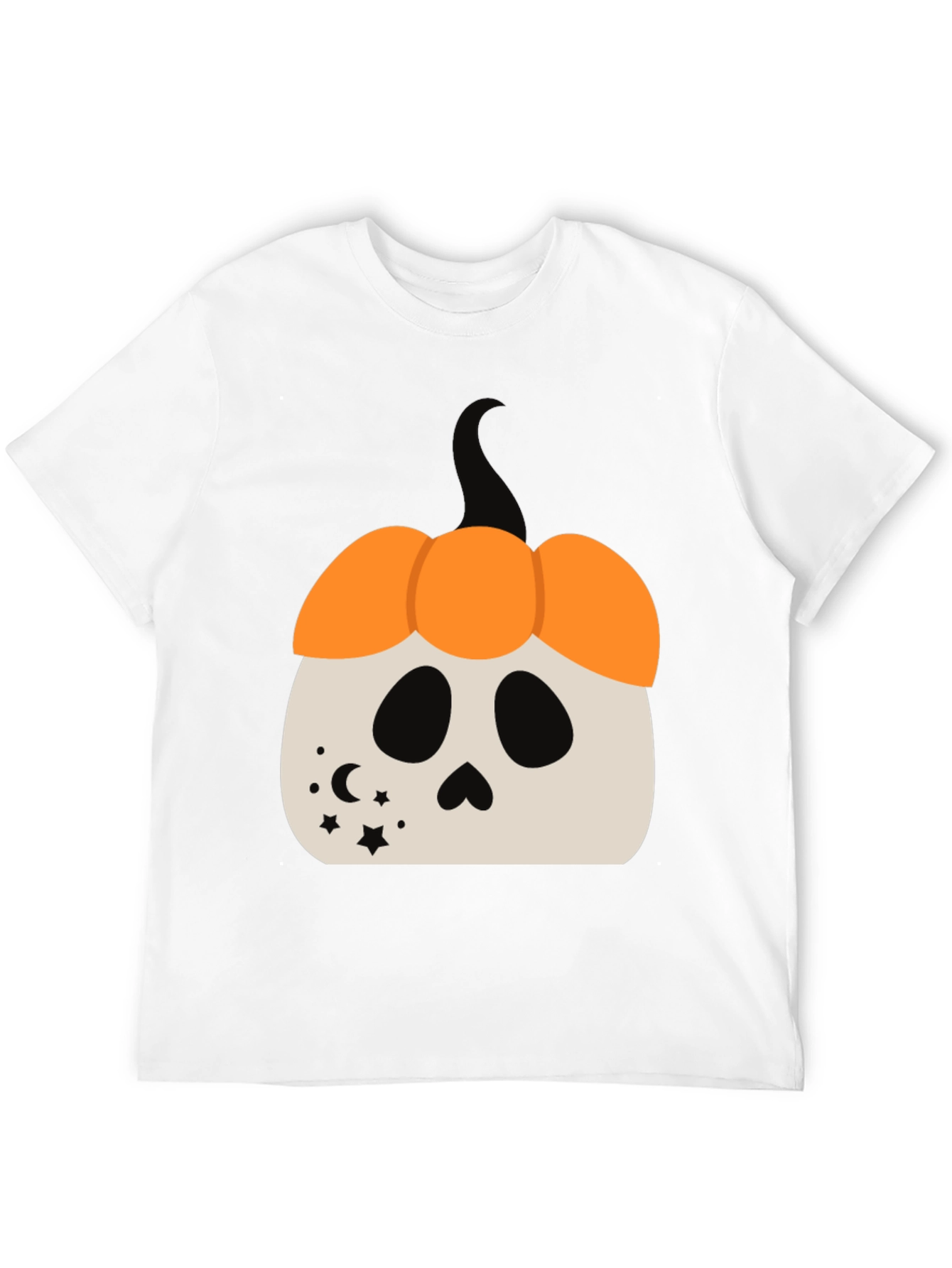 Get into the Halloween spirit with this unique graphic tee! The shirt features a playful yet spooky design of a pumpkin-shaped skull with moon and stars details. Made from soft, breathable fabric, this t-shirt offers all-day comfort and style. Its classic fit makes it a versatile addition to your casual wardrobe. Perfect for Halloween parties, trick-or-treating, or simply expressing your festive spirit. Pair it with jeans or leggings for a fun and effortless look. This tee is sure to turn heads and spark conversations wherever you go! Get yours today and celebrate Halloween in style!