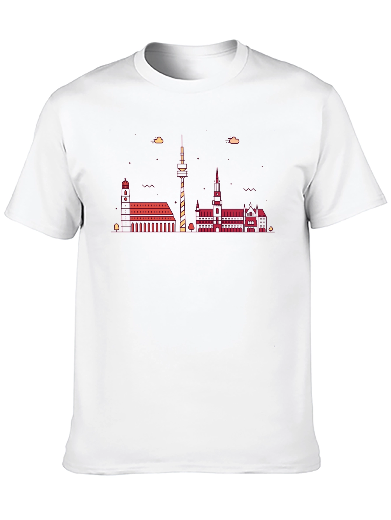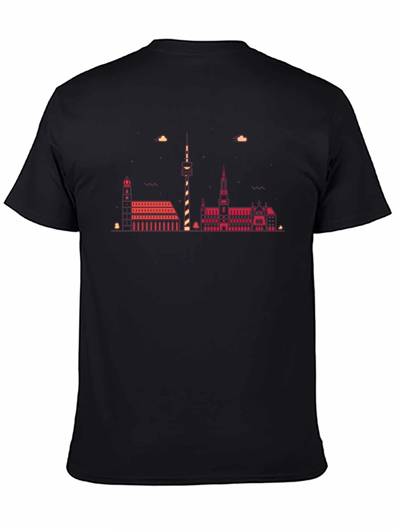 Showcase your love for Hanover with this stylish black t-shirt. Featuring a vibrant graphic of the Hanover skyline, this tee is perfect for locals and tourists alike. The design pops in a contrasting red/orange hue, displaying famous city landmarks. Made from a soft, breathable cotton, this classic fit t-shirt is comfortable for everyday wear. Pair it with jeans for a casual look or dress it up with a jacket. A great conversation starter and a unique way to represent your favorite city. Get yours today and let your Hanover pride shine!