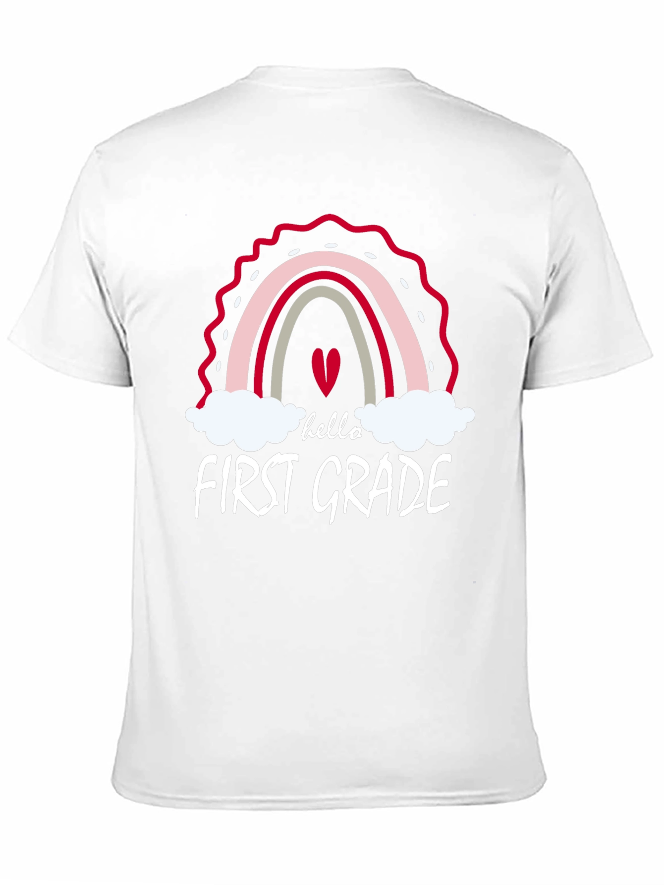 Show your love of teaching with this adorable Hello First Grade T-shirt! Featuring a cute rainbow design with scalloped trim, fluffy clouds, and a heart, this tee is perfect for teachers heading back to school. The design is printed on a soft, comfortable black tee, ideal for everyday wear in the classroom. A fun and stylish way to express your passion for education, this shirt is sure to bring smiles to your students' faces. A great gift for teachers!