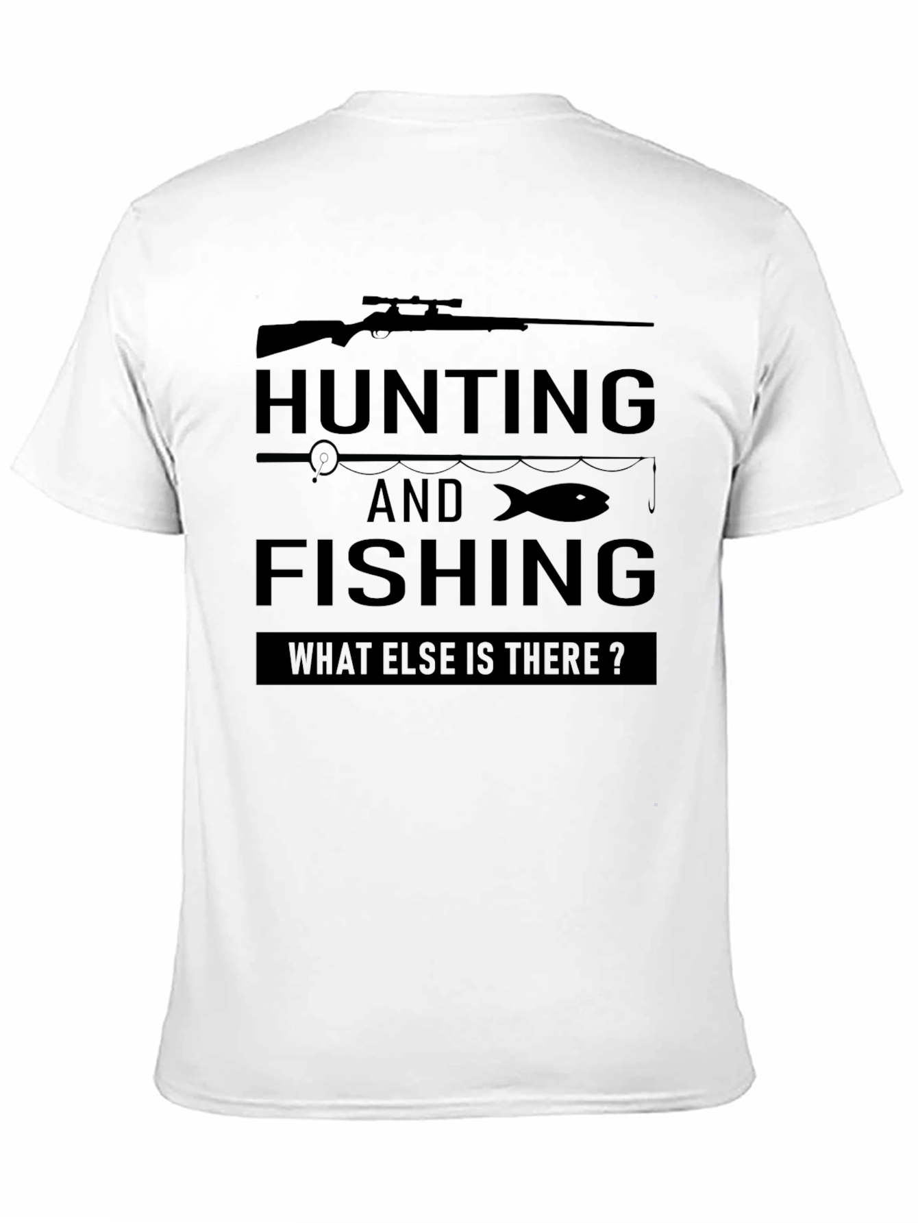 Showcase your love for the outdoors with this classic black graphic t-shirt. Featuring a bold design with a rifle, fishing rod and fish with the text "HUNTING AND FISHING. WHAT ELSE IS THERE?", this tee is perfect for those who appreciate the simple pleasures of life. Made from a comfortable fabric, it's ideal for casual wear, outdoor adventures, or as a statement piece for any occasion. A must-have addition to any wardrobe, express your passion for hunting and fishing with style.