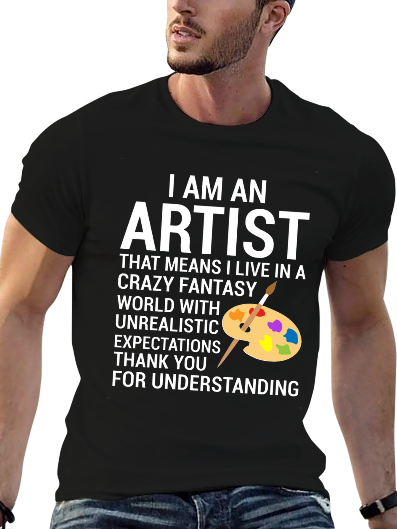 Show off your creative side with this unique graphic t-shirt. The bold design features the phrase "I AM AN ARTIST" above a palette, making a statement. Made from a soft fabric, this shirt offers both comfort and style. The classic fit makes it suitable for casual wear, art events, or expressing your artistic personality. Makes a great gift for the creative in your life.