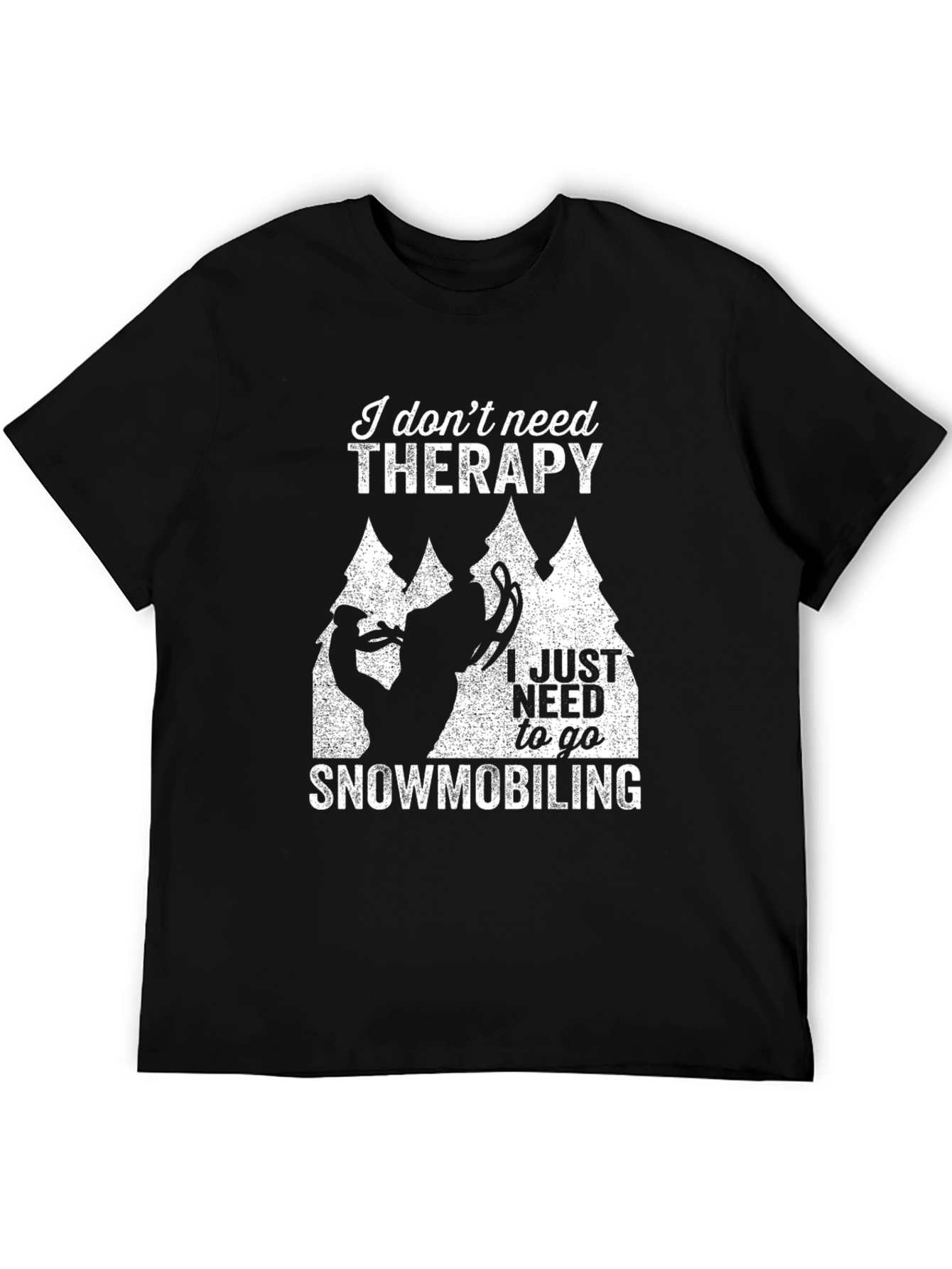 Show your love for snowmobiling with this stylish black t-shirt! Featuring the humorous slogan "I don't need THERAPY. I just need to go SNOWMOBILING", this tee is perfect for snowmobile enthusiasts. The design incorporates snowy pine trees and a snowmobile silhouette, creating a cool and rugged look. Made from comfortable material, this shirt is ideal for casual wear, outdoor adventures, or as a gift for the snowmobiler in your life. Wear your passion with pride and let everyone know your preferred form of therapy!