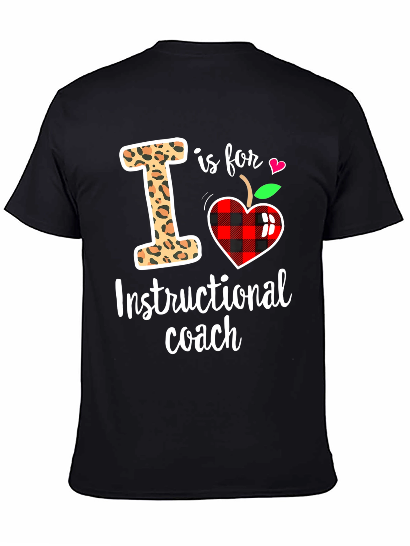 Show your appreciation for educators with this fun 'I is for Instructional Coach' t-shirt! The design features a leopard-print 'I', followed by 'is for' and an apple designed as a heart with red and black buffalo plaid pattern, a green leaf and a cute little pink heart near it. Perfect for teachers, coaches, and anyone who loves education. This tee is comfortable and stylish, ideal for wearing to school, casual outings, or teacher appreciation events. Grab one for yourself or as a thoughtful gift for your favorite instructional coach!
