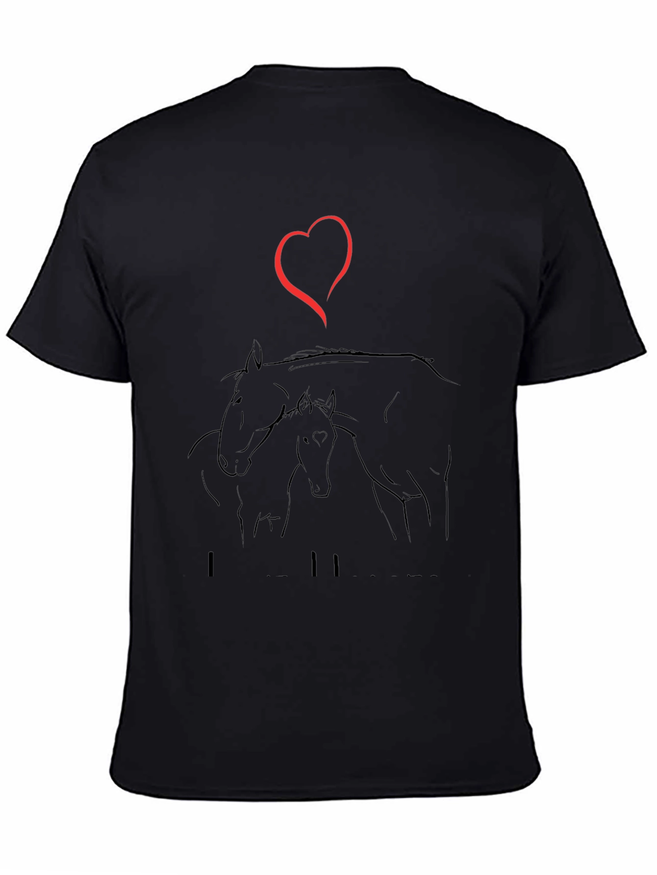 Show your love for horses with this stylish black t-shirt. Featuring a unique design with a heart above a horse and foal, this tee is perfect for any horse lover. Made from a comfortable and breathable fabric, it's ideal for everyday wear. The classic fit makes it a versatile addition to your wardrobe. Whether you're heading to the barn or out on the town, this t-shirt lets you express your passion for horses in style. A great gift for horse enthusiasts of all ages.