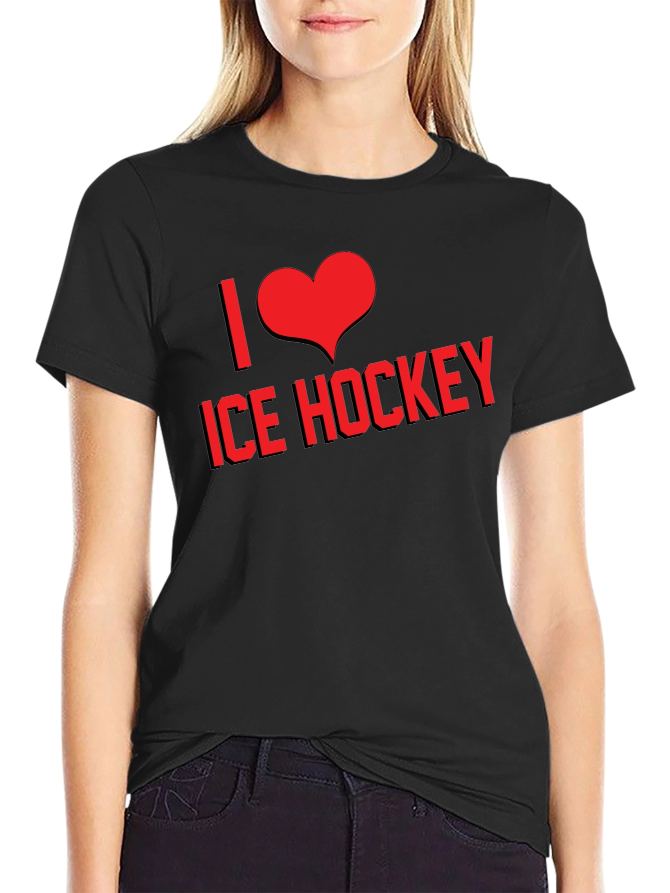 Show your passion for ice hockey with this stylish black t-shirt. Featuring a bold "I ❤️ ICE HOCKEY" graphic in vibrant red, this tee is perfect for fans of the sport. The heart symbol adds a touch of playful charm to the design. Made from a soft and comfortable fabric, this shirt is ideal for everyday wear. Whether you're heading to a game, practicing on the ice, or simply hanging out with friends, this t-shirt lets you display your love for ice hockey with pride. The classic fit and crew neck design ensure a timeless look, making it a versatile addition to any wardrobe.