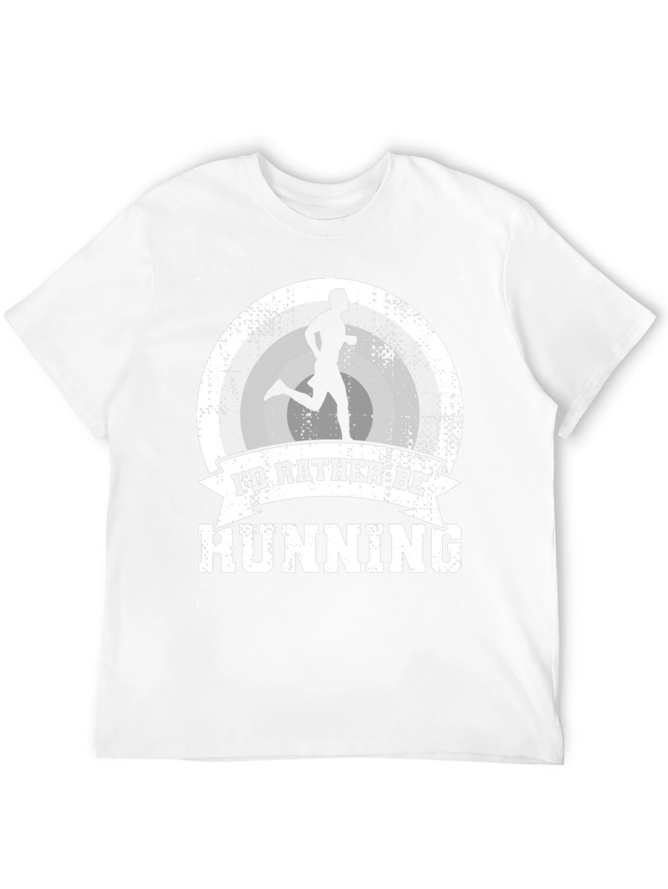 Show off your love for running with this stylish and comfortable men's graphic tee! The black t-shirt features a distressed-style print with a silhouette of a runner inside of a grey, target-like design. Above and below the runner, the phrase 'I'd Rather Be Running' is emblazoned in a bold, white font on a banner design. Made from a soft, breathable fabric, this tee is perfect for casual wear, workouts, or showing off your passion for running. Pair it with your favorite jeans or shorts for a relaxed, sporty look. Make a statement and let everyone know where you'd rather be!