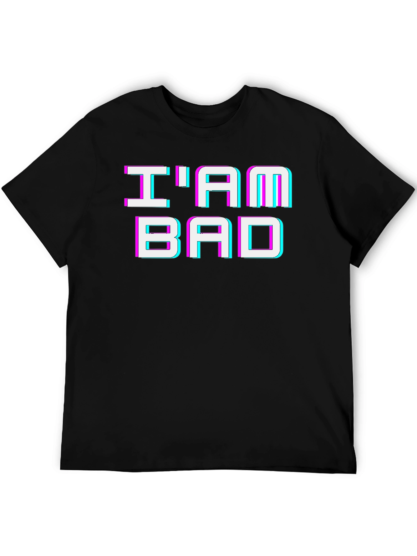 Show your rebellious side with this eye-catching black t-shirt! The bold "I'M BAD" text features a unique 3D glitch effect, with vibrant cyan and magenta accents that make the design pop. Made from a soft and comfortable fabric, this tee is perfect for casual wear. The shirt has a classic fit that flatters any body type. This t-shirt is perfect for expressing your unique personality and a bit of a bad attitude. Dress it up with a jacket or keep it casual with jeans – either way, you'll make a statement.