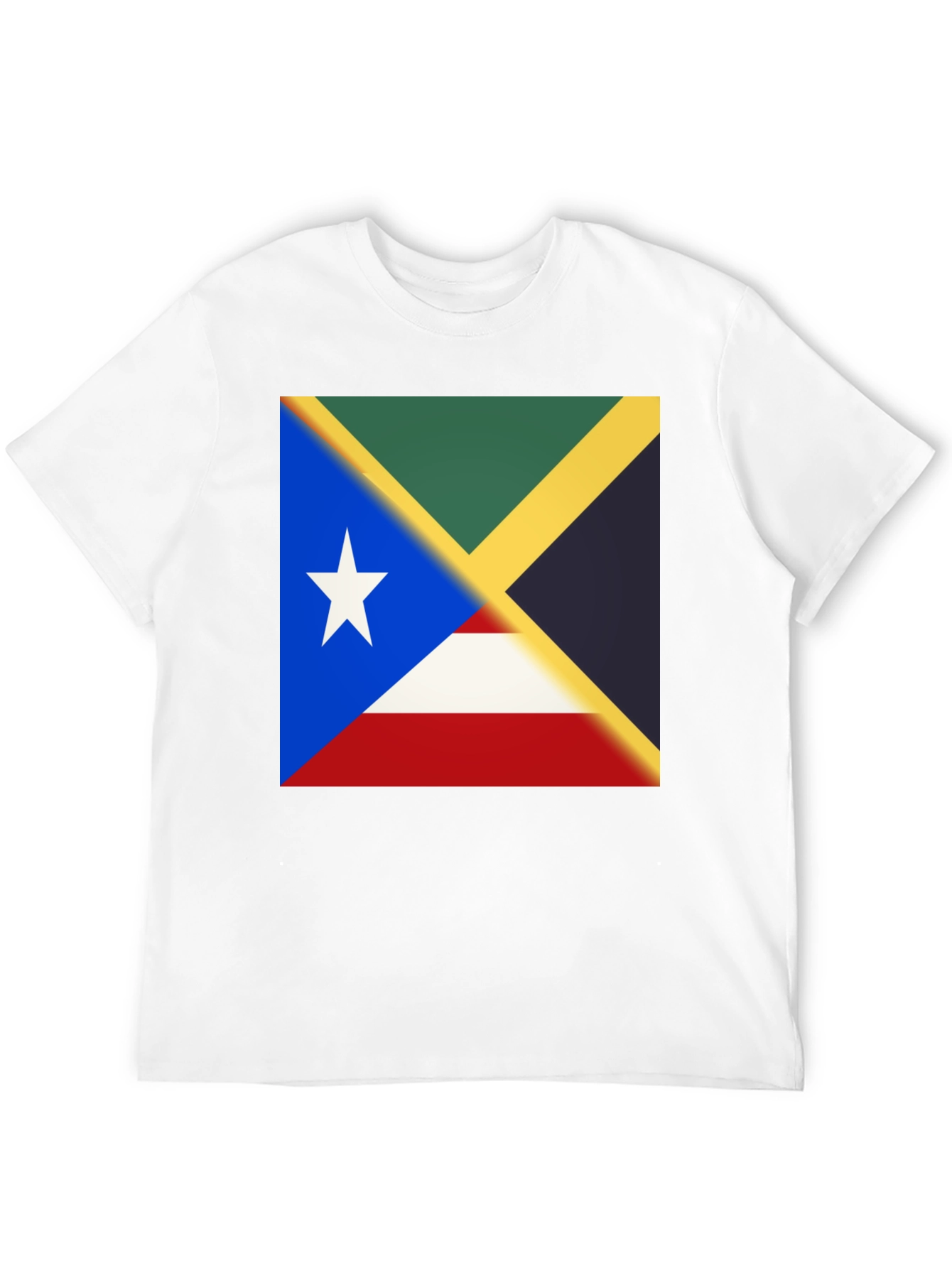 Show your island pride with this unique T-shirt. The design features a vibrant blend of the Jamaican and Puerto Rican flags, creating a bold and eye-catching statement piece. Made from a comfortable, soft fabric, this tee is perfect for everyday wear. The black background makes the flag colors pop, ensuring you stand out in any crowd. Ideal for cultural events, casual outings, or simply expressing your heritage. This T-shirt combines style and comfort, offering a relaxed fit that’s suitable for all body types. Wear your roots with pride!