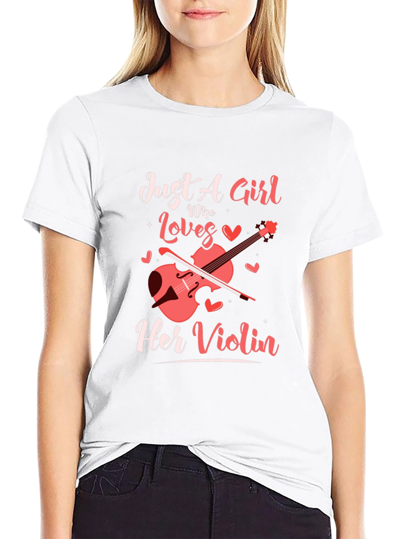 Show your love for music with this stylish black t-shirt! Featuring a vibrant, eye-catching graphic design with the text "Just A Girl Who Loves Her Violin", complete with a lovely violin illustration surrounded by hearts. This tee is perfect for violin players, music enthusiasts, or anyone who appreciates a cute and unique design. The shirt appears to be made of a comfortable, breathable fabric. Wear it casually, to music classes, or to concerts. A must-have for your wardrobe or a thoughtful gift for the music lover in your life.