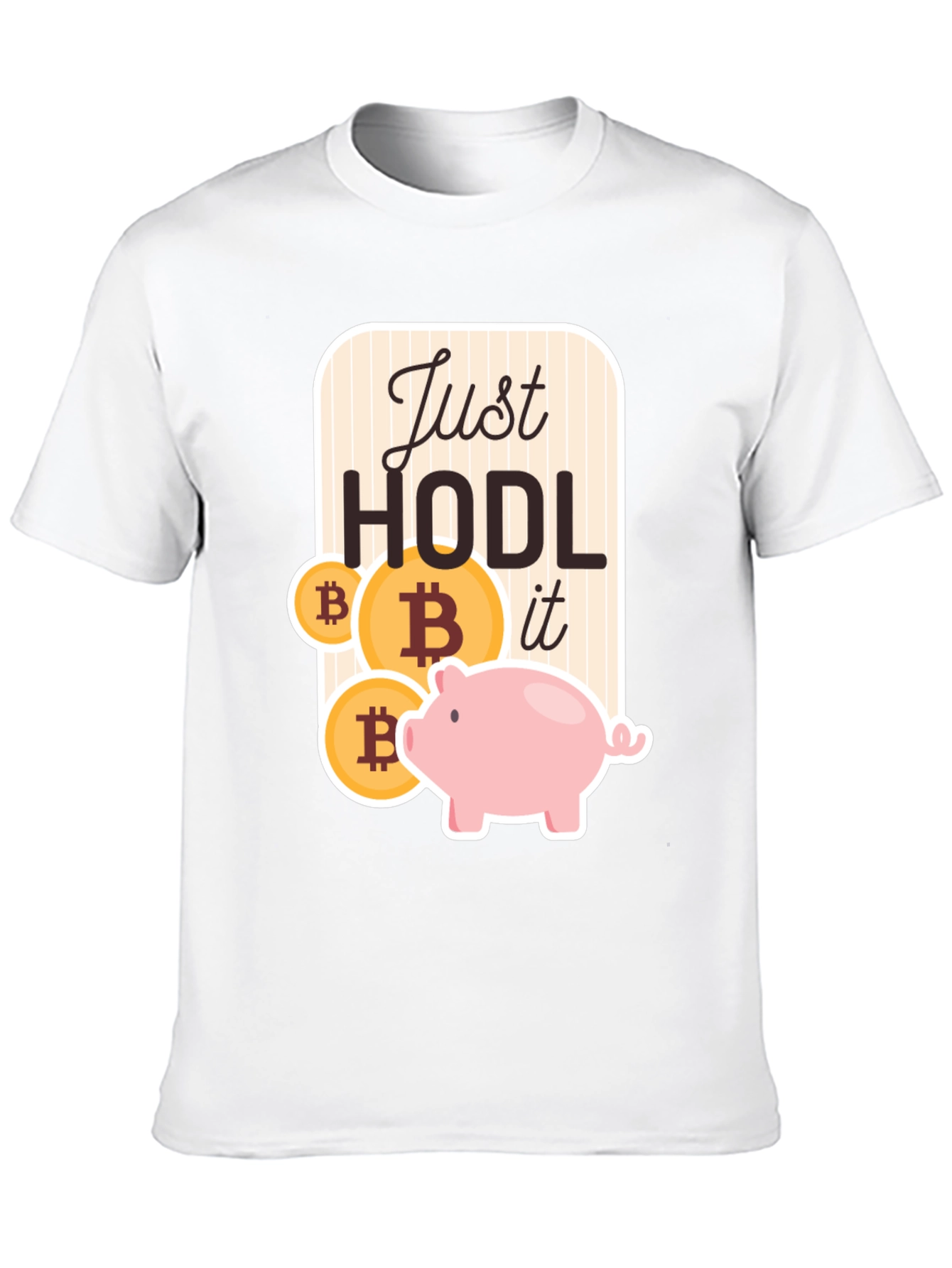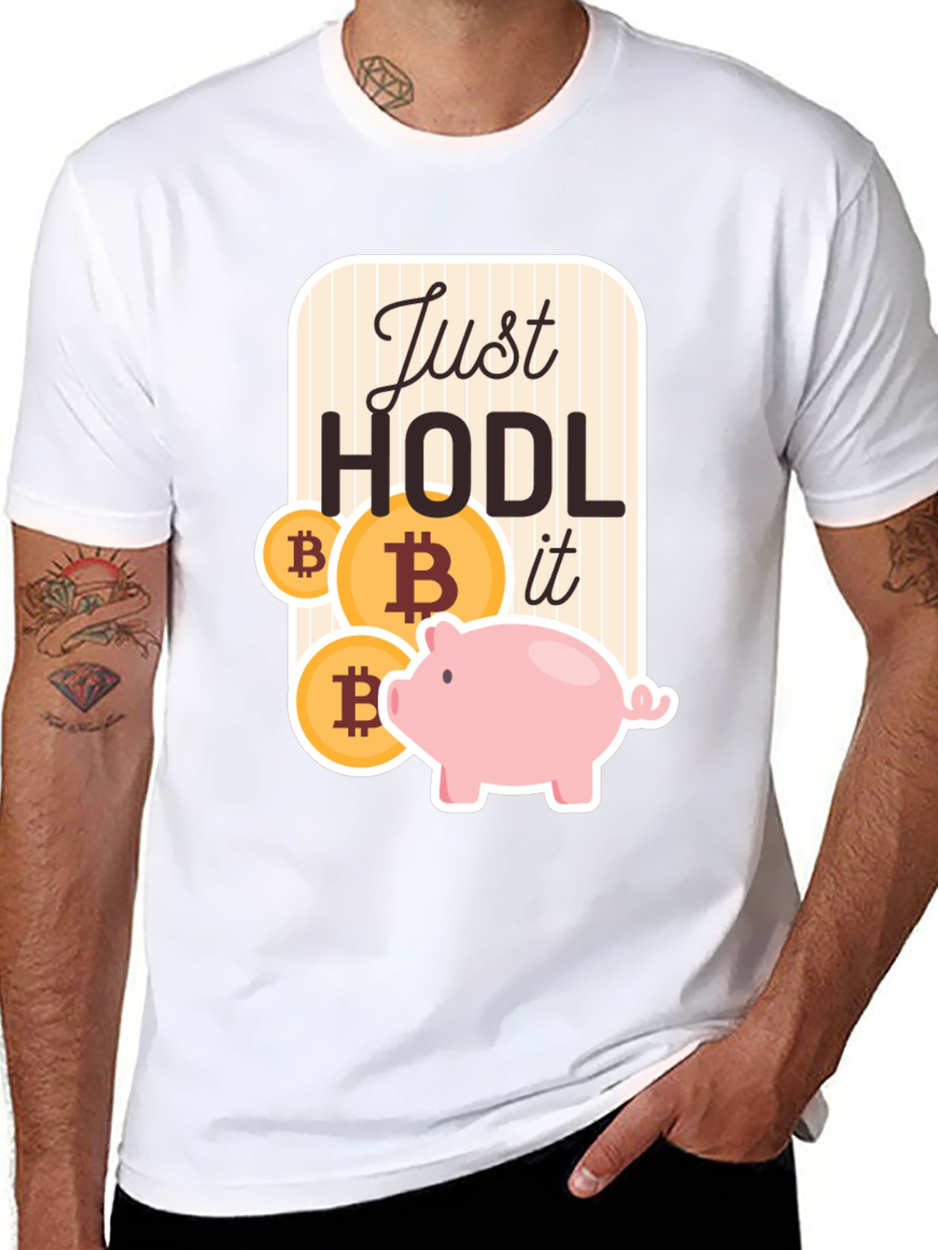 Show your love for cryptocurrency with this eye-catching 'Just HODL it' T-shirt! The design features a playful graphic with Bitcoin coins and a cute piggy bank, all set against a stylish background. Perfect for crypto enthusiasts and investors. This t-shirt is a must-have for anyone looking to make a statement. Wear it to meetups, casual outings, or while you're trading online. A great conversation starter and a fun way to show off your digital asset pride. Add this unique and trendy tee to your wardrobe today!