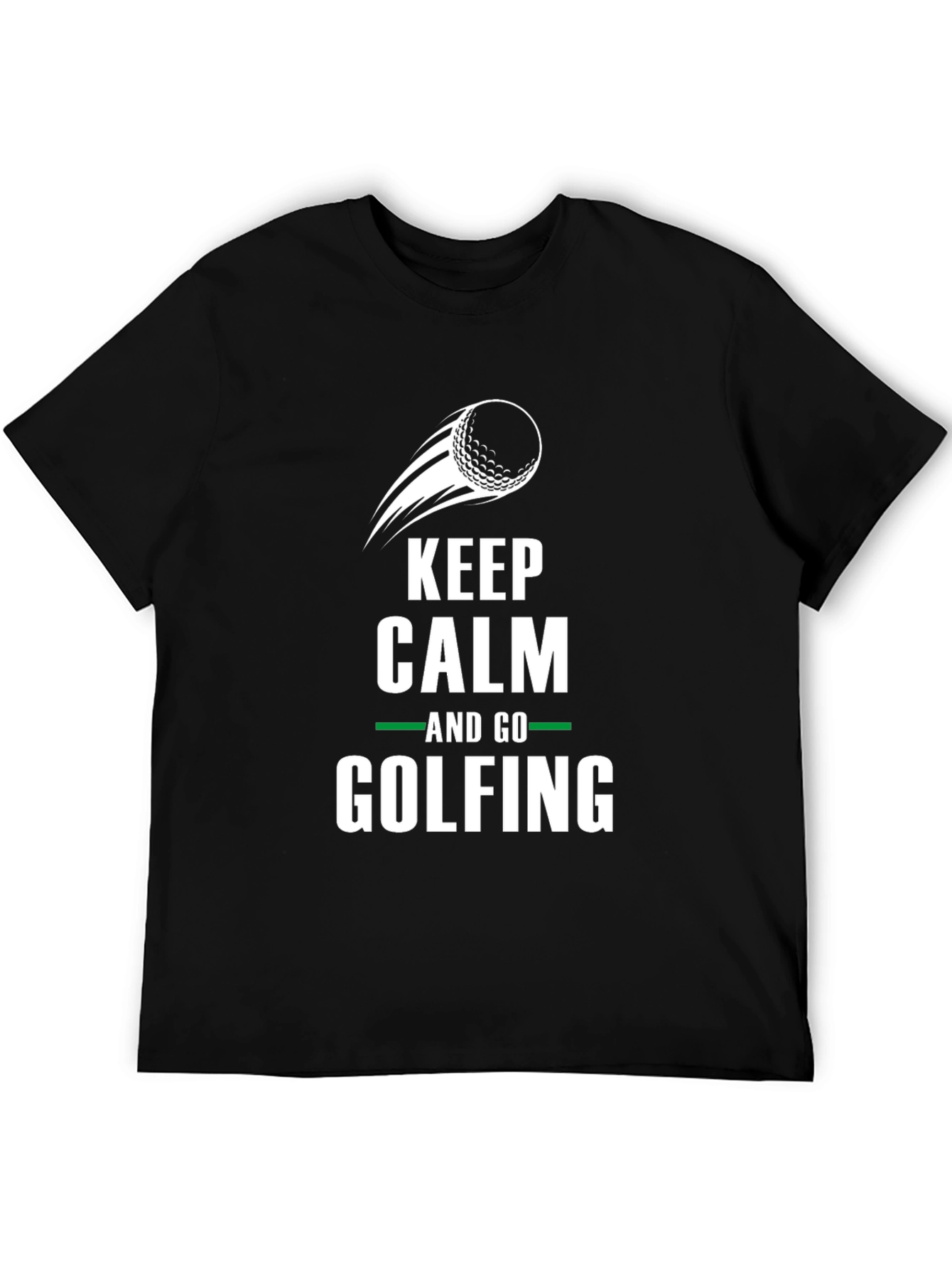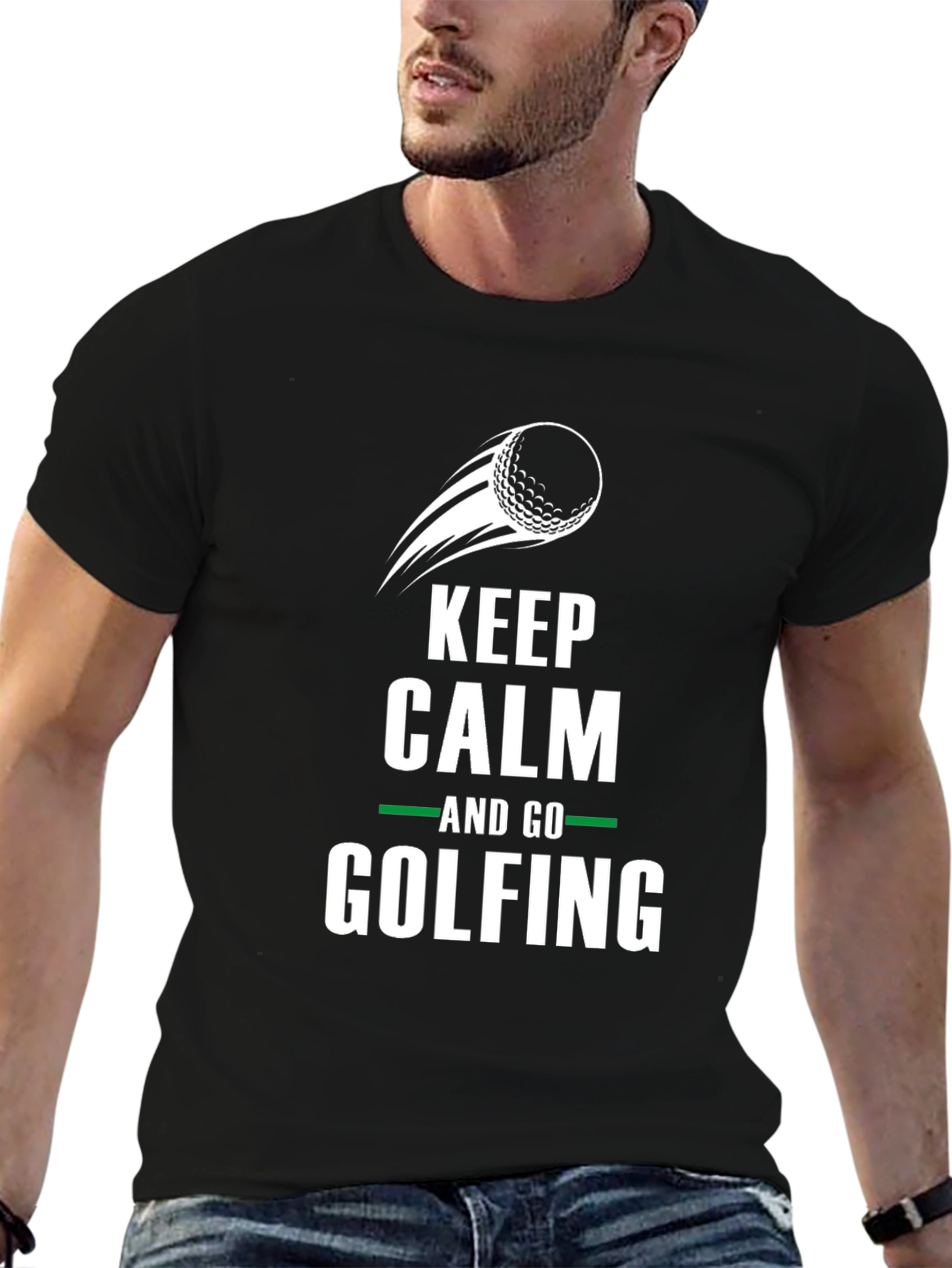Show off your love for golf with this stylish graphic tee. The shirt features a fun design with a golf ball and the words "Keep Calm and Go Golfing." Made from a comfortable, breathable fabric, this t-shirt is perfect for wearing on the course or out on the town. It's a great way to express your passion for the game and makes a unique gift for any golfer. The classic black color ensures it pairs well with any casual outfit. Get yours today and tee off in style!