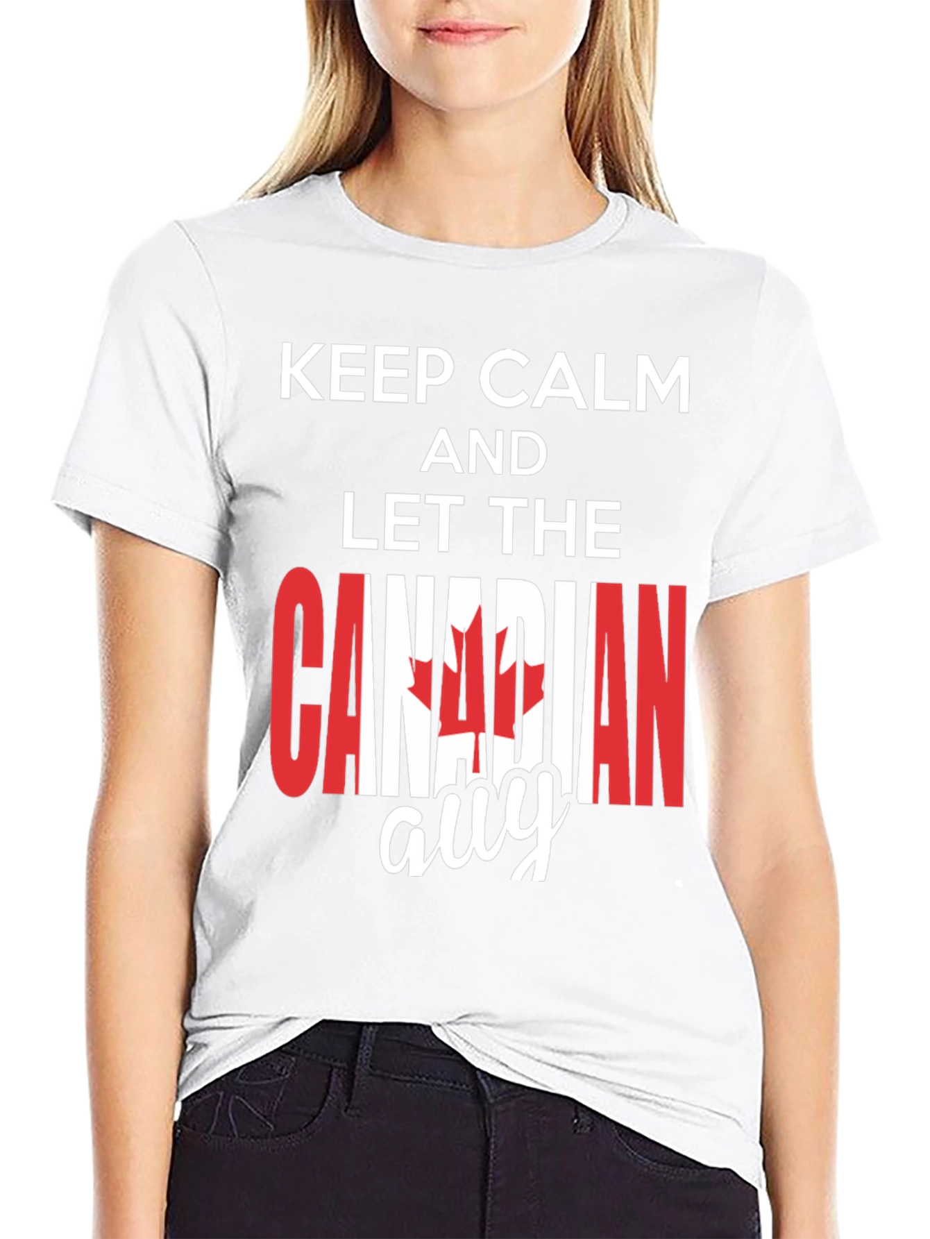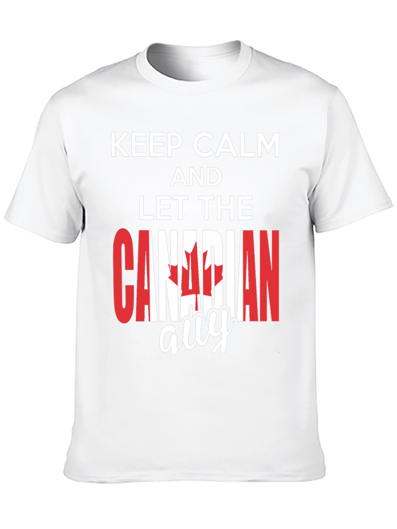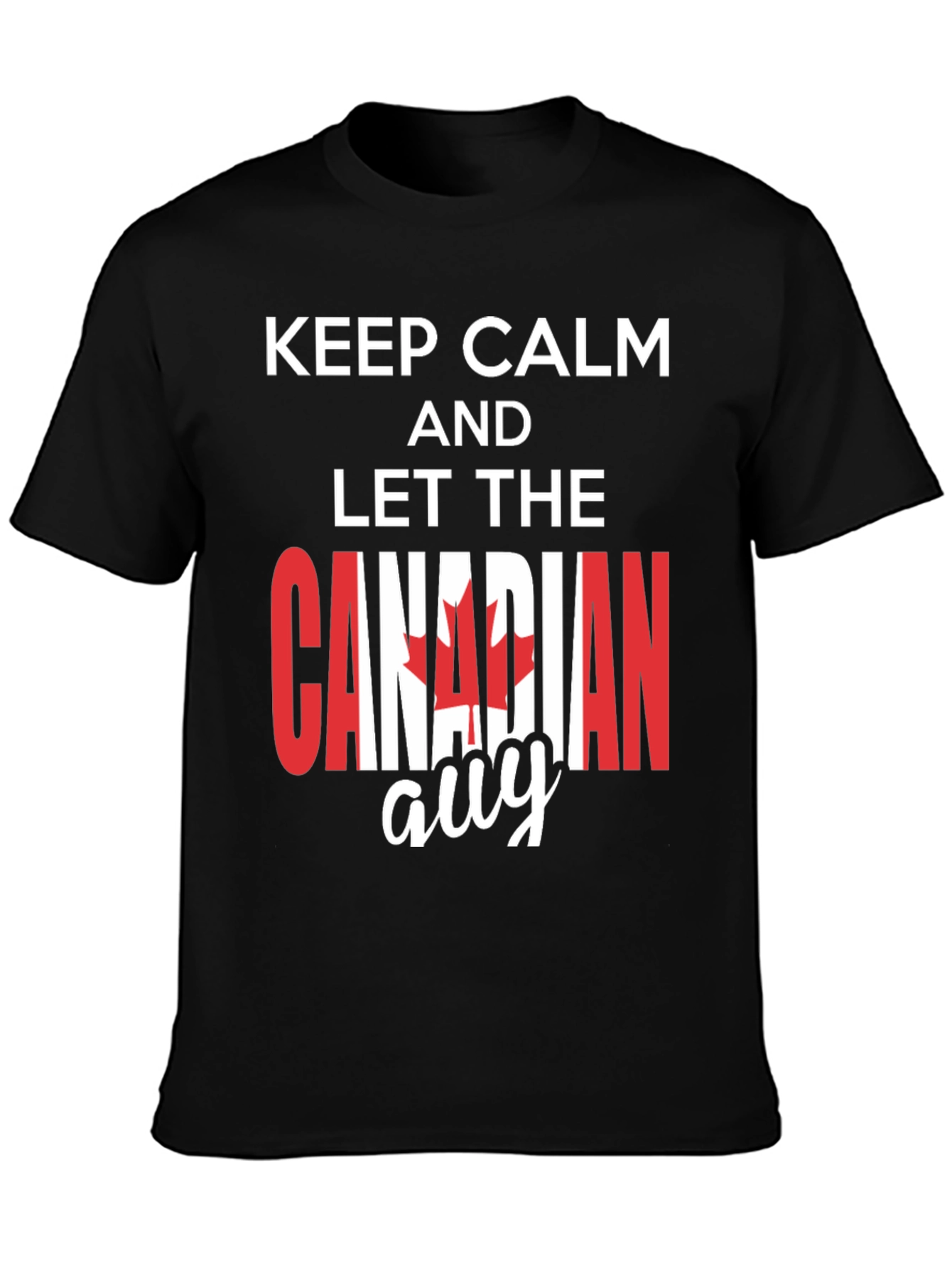 Show off your Canadian pride with this eye-catching black t-shirt! Featuring the phrase "Keep Calm and Let The CANADIAN", this shirt playfully displays your roots. The word 'Canadian' is strikingly designed with a red and white maple leaf motif. Made from a soft, comfortable material, it's perfect for casual wear or for celebrating Canadian holidays and events. Makes a great gift for any proud Canadian, or for anyone who loves the country! Grab yours today and showcase your Canadian spirit in style!
