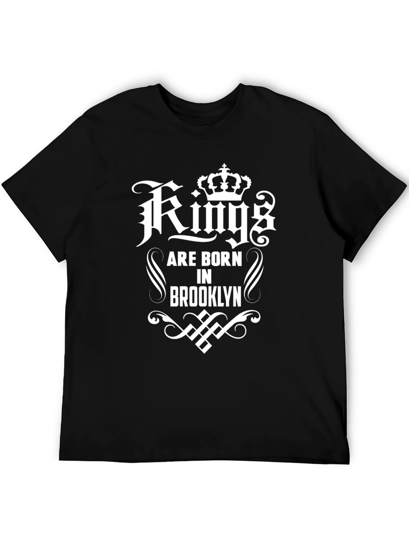 Show your Brooklyn pride with this stylish black t-shirt! This eye-catching tee features a bold white graphic with the words 'Kings are Born in Brooklyn,' complete with a crown design. Made from a comfortable material, this short-sleeve t-shirt is perfect for casual wear. Whether you're hitting the streets or just lounging at home, this shirt is a great way to represent your borough. Get yours today and let everyone know where royalty is born!