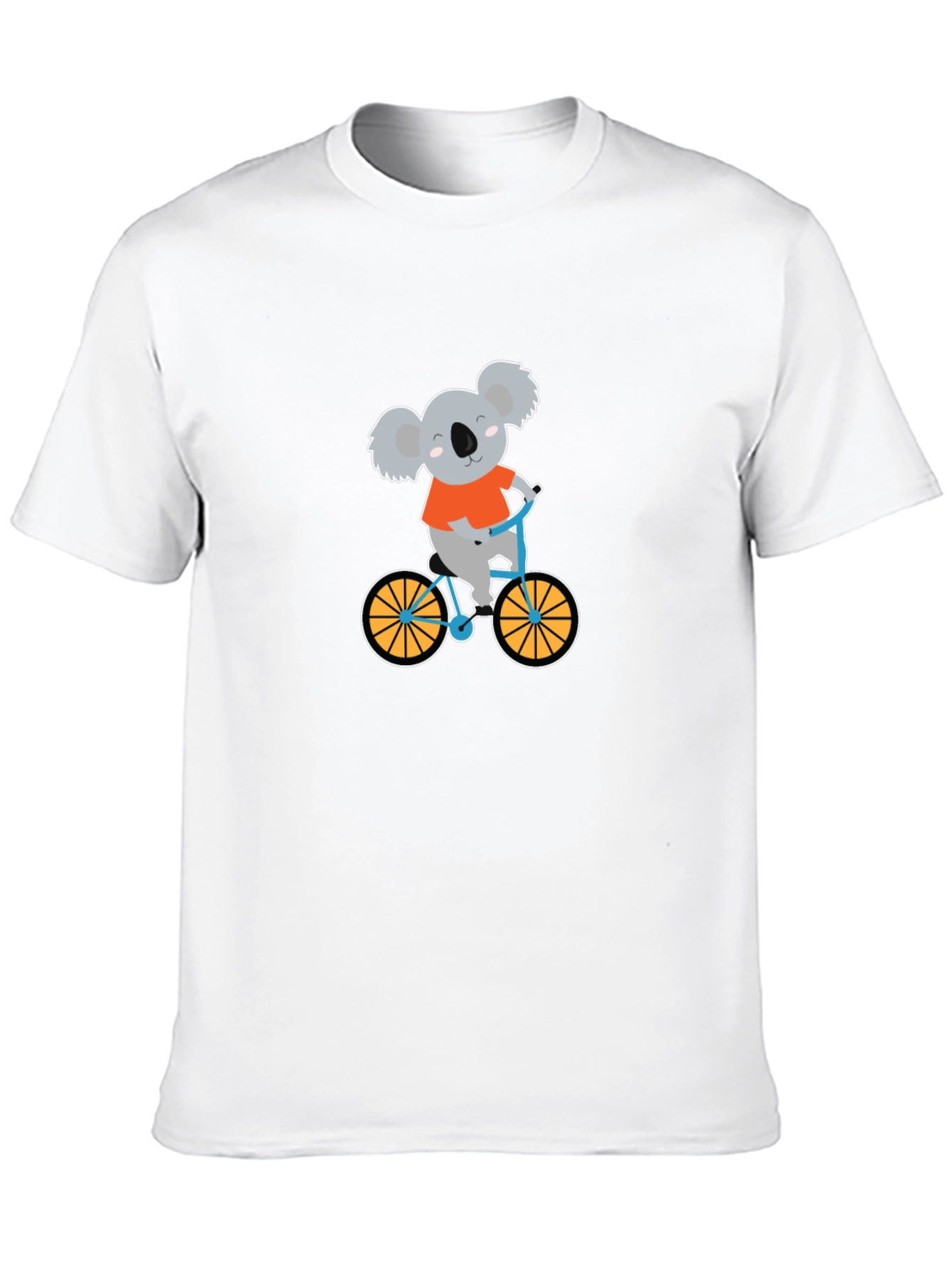 Show off your playful side with this adorable graphic t-shirt. Featuring a cute koala bear riding a bicycle, this black t-shirt is sure to turn heads. The design is printed on a soft, comfortable fabric, perfect for everyday wear. The bright colors of the koala and bicycle pop against the dark background, creating a visually appealing and fun design. Ideal for casual outings, weekend adventures, or simply lounging at home, this t-shirt adds a touch of whimsy to any outfit. Get ready to spread some joy and showcase your unique style with this delightful koala bear t-shirt.