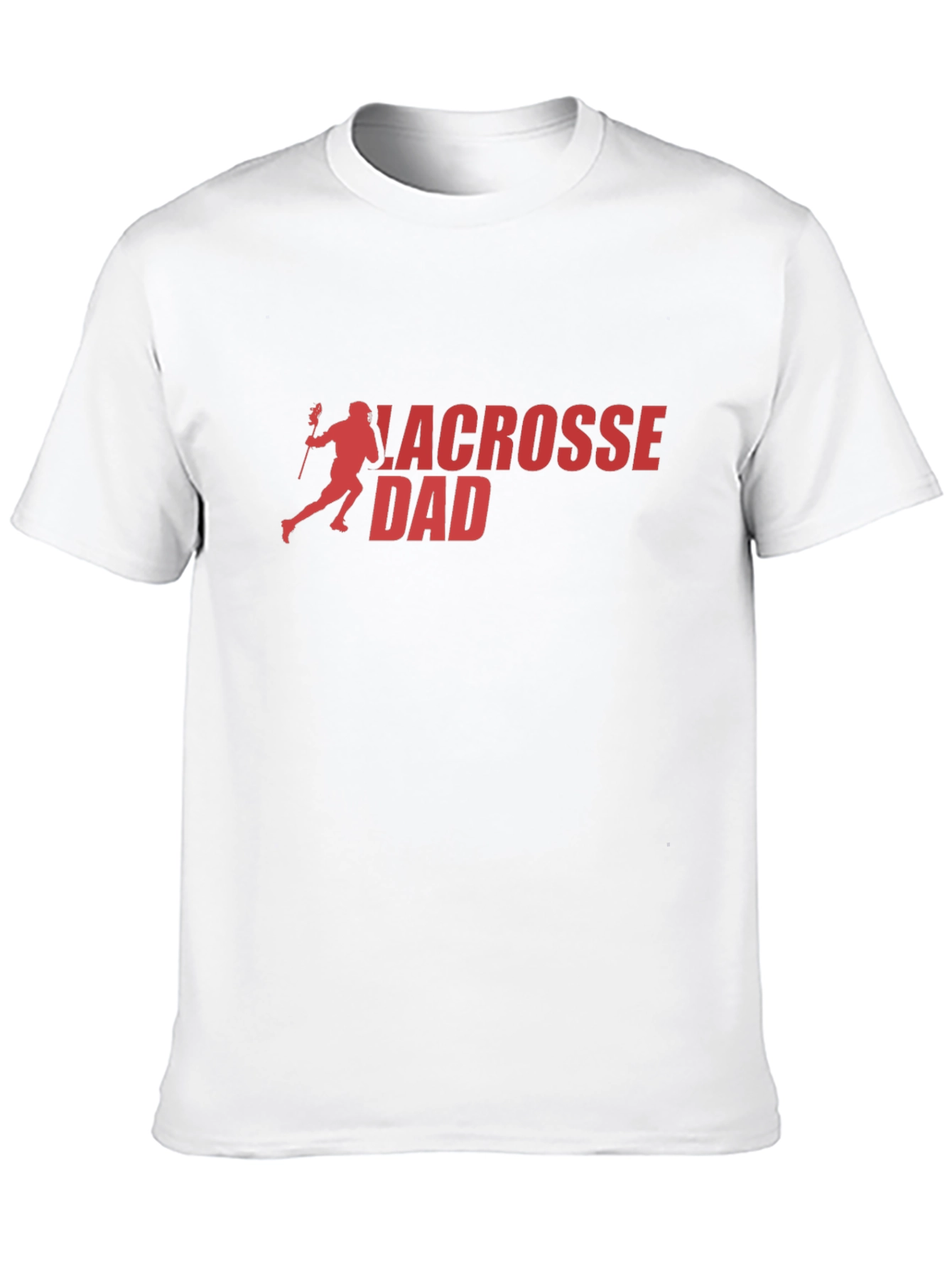 Show your lacrosse pride with this stylish black t-shirt! Featuring a bold red graphic, this tee is perfect for lacrosse dads who want to support their kids in style. The design incorporates a lacrosse player silhouette alongside the words "LACROSSE DAD." Made from a comfortable material, this shirt is ideal for wearing to games, practices, or just around town. It's a great way to show off your love for the sport. A must-have for any proud lacrosse parent!
