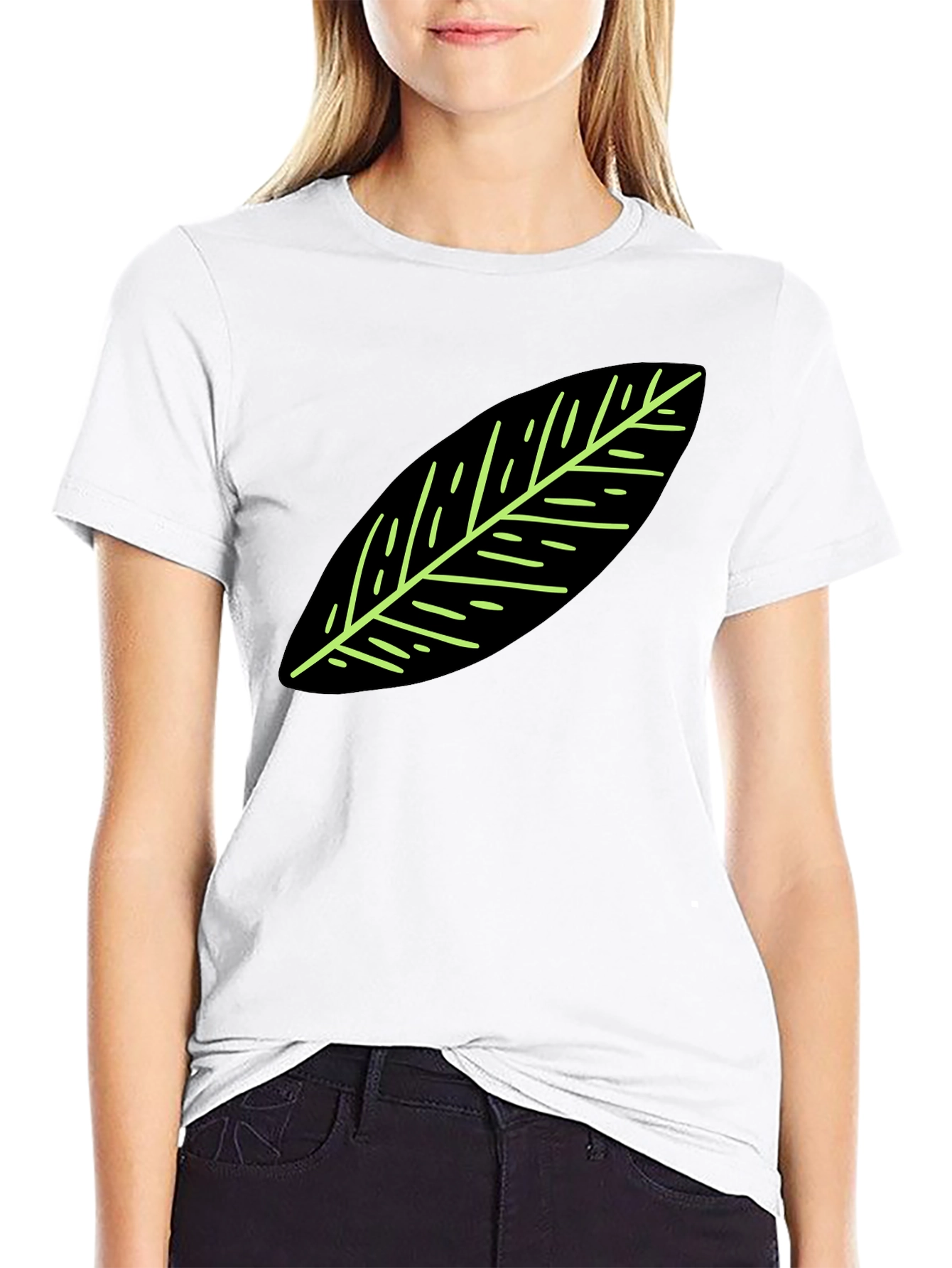 Elevate your casual style with this striking black t-shirt. Featuring a bold leaf graphic, this tee is perfect for adding a touch of nature-inspired flair to your wardrobe. The clean design and comfortable fit make it ideal for everyday wear. Whether you're heading to the park, meeting friends, or simply relaxing at home, this t-shirt offers both style and ease. The unique graphic adds a modern edge, making it a standout piece in your collection. Pair it with jeans or shorts for a relaxed yet fashionable look. Experience comfort and style effortlessly with this eye-catching tee.